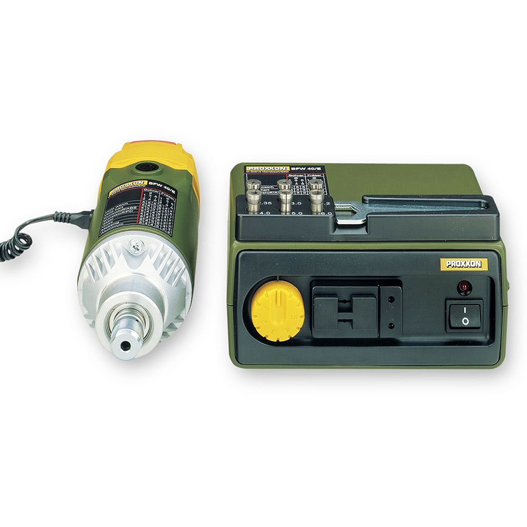 PROXXON MILL/DRILL SYSTEM BFW 40/E 20165 | SPINDLE SPEED INFINITELY VARIABLE BETWEEN 900 AND 6,000 RPM | OMPLETE WITH TRIPLE SLIT, HARDENED COLLETS COVERING 2.35 MM 3 MM 3.2 MM 4 MM 5 MM AND 6 MM AS WELL AS ONE LOCKING PIN AND ONE SPANNER | MADE IN GERMANY