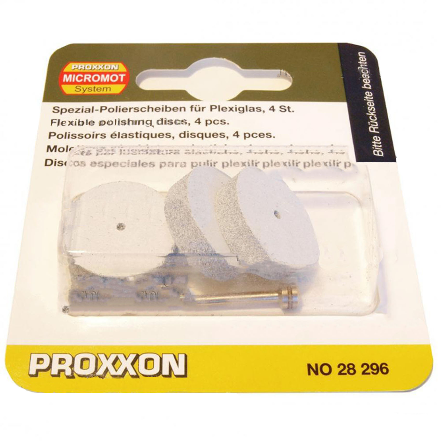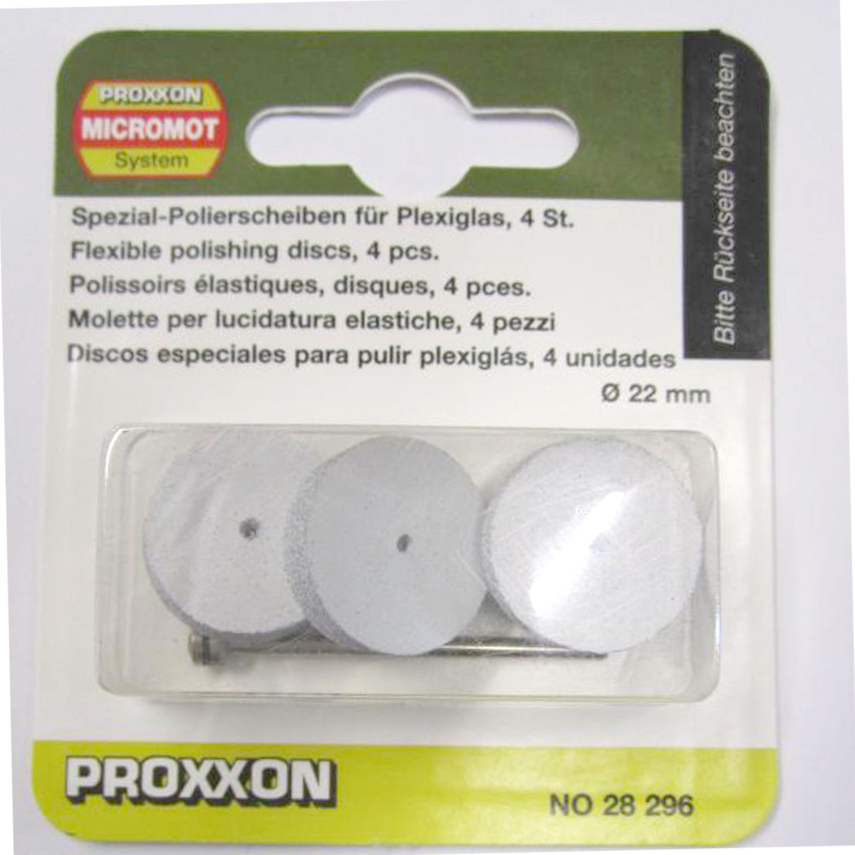 PROXXON 22MM SPECIAL POLISHING PADS FOR ACRYL GLASS WITH ARBOR 4 PIECES 28296 | MADE IN GERMANY