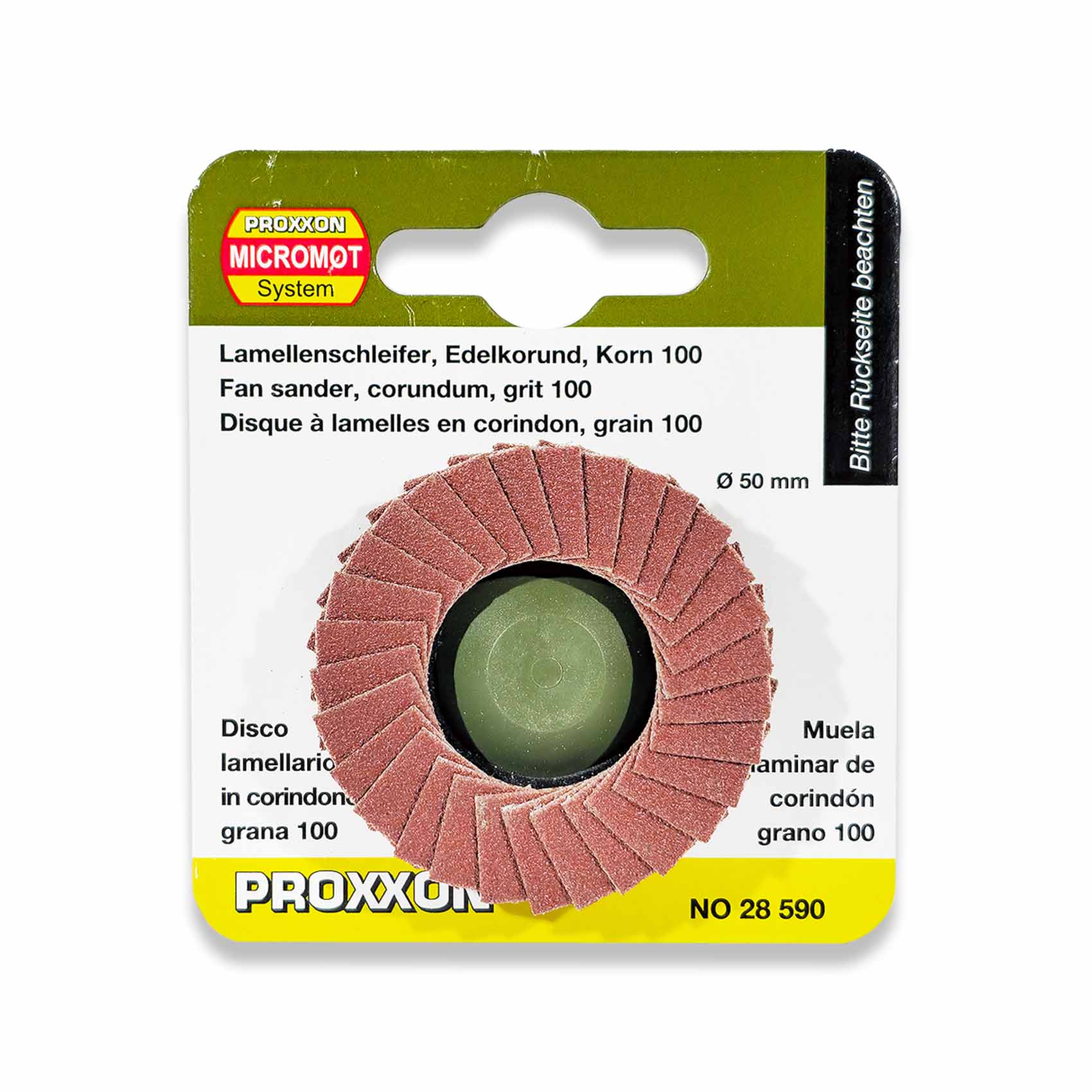 PROXXON Ø50MM CORUNDUM FAN SANDER 100 GRIT 28590 DISC | FOR GRINDING TEMPERED CAST IRON, CAST IRON, STAINLESS STEEL, NON-FERROUS METALS, WOOD, AND PLASTIC | LOW WEAR-RESISTANT | MADE IN GERMANY