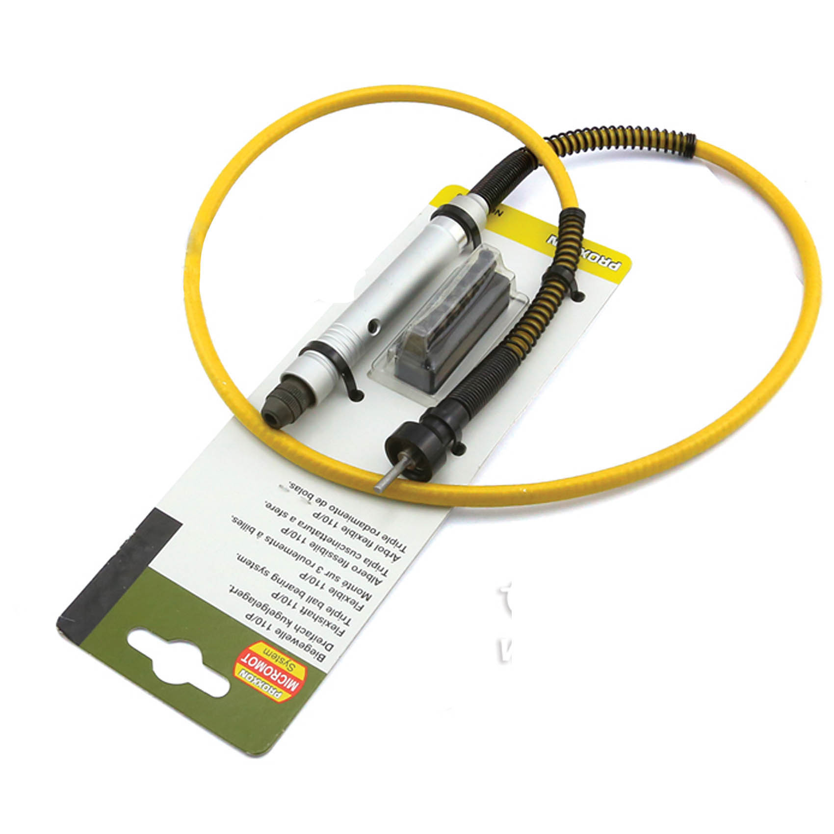 Dual ball-bearinged milled steel shaft with tool holder for MICROMOT steel collets. Ball-bearinged shaft end on machine. Highly flexible core (does not run hot when working on tight radii). Length 100cm. For a maximum of 25,000rpm. Includes 6 steel collets (1.0 - 1.5 - 2.0 - 2.4 - 3.0 and 3.2mm).