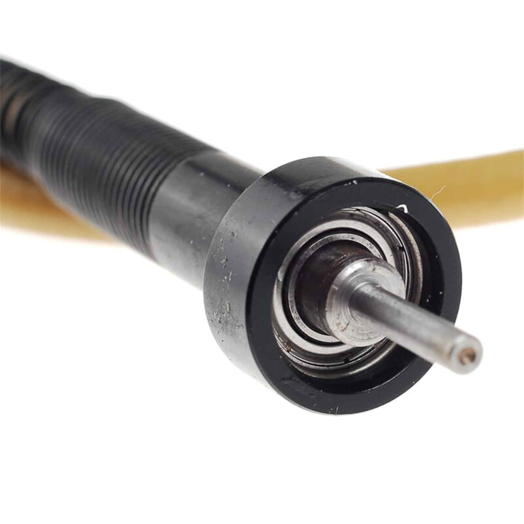 USES : DUAL BALL-BEARINGED MILLED STEEL SHAFT WITH TOOL HOLDER FOR MICROMOT STEEL COLLETS. BALL-BEARINGED SHAFT END ON MACHINE. HIGHLY FLEXIBLE CORE DOES NOT RUN HOT WHEN WORKING ON TIGHT RADIUS.