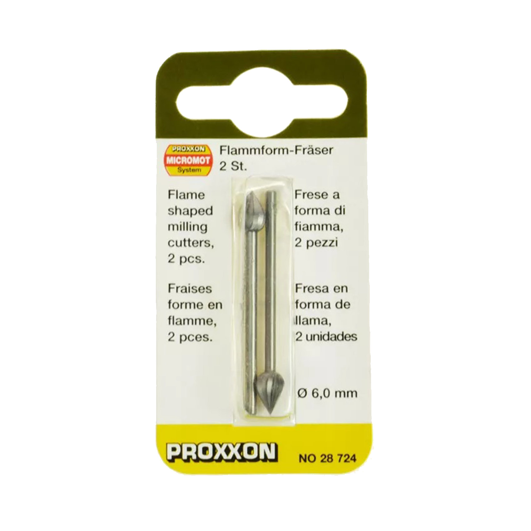 PROXXON 6MM FLAME SHAPED TUNGSTEN VANADIUM MILLNG BITS 2 PIECES 28724 | MADE IN GERMANY