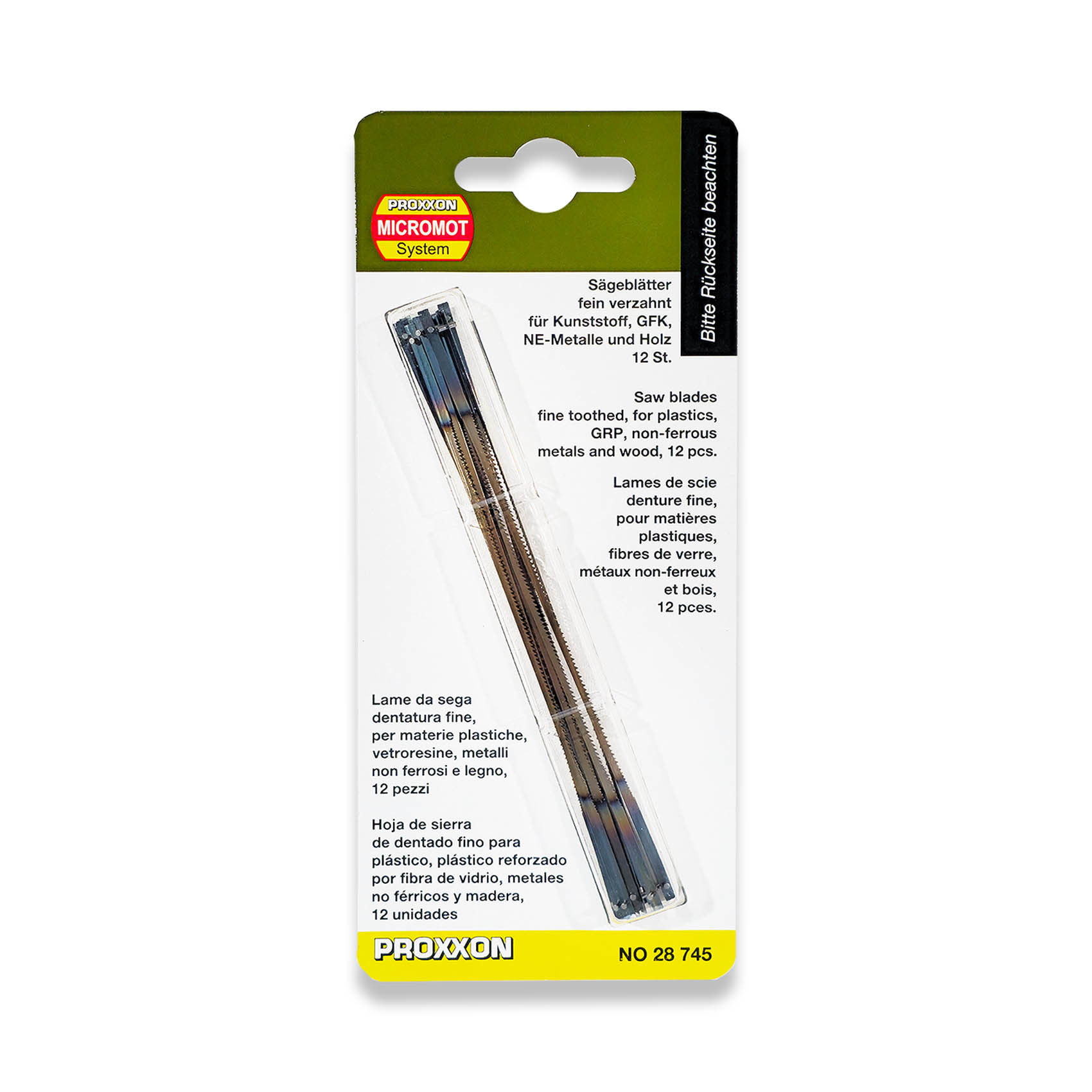PROXXON FINE TOOTHED SAW BLADES WITH PIN ENDS 12 PIECES 25 TPI PER 25 MM 28745 | MADE IN GERMANY