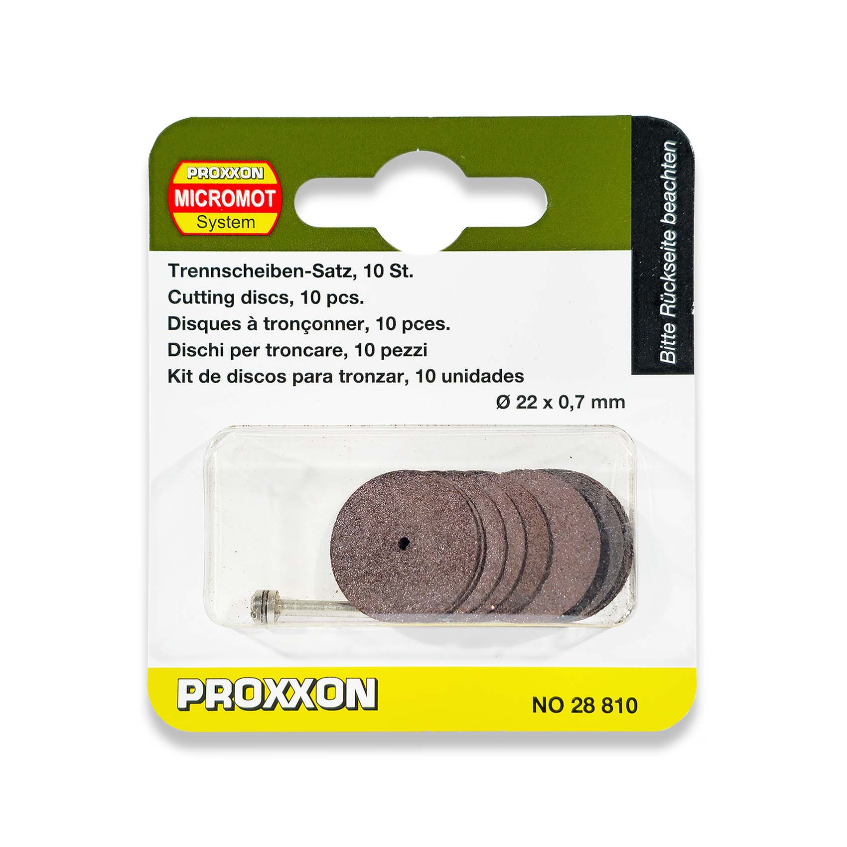 PROXXON Ø22MM CORUNDUM CUTTING DISC 10 PCS 28810 WITH ARBOR | USED TO PART ALLOYS AND METALS, STAINLESS STEELS AND NON-FERROUS METALS | MADE IN GERMANY
