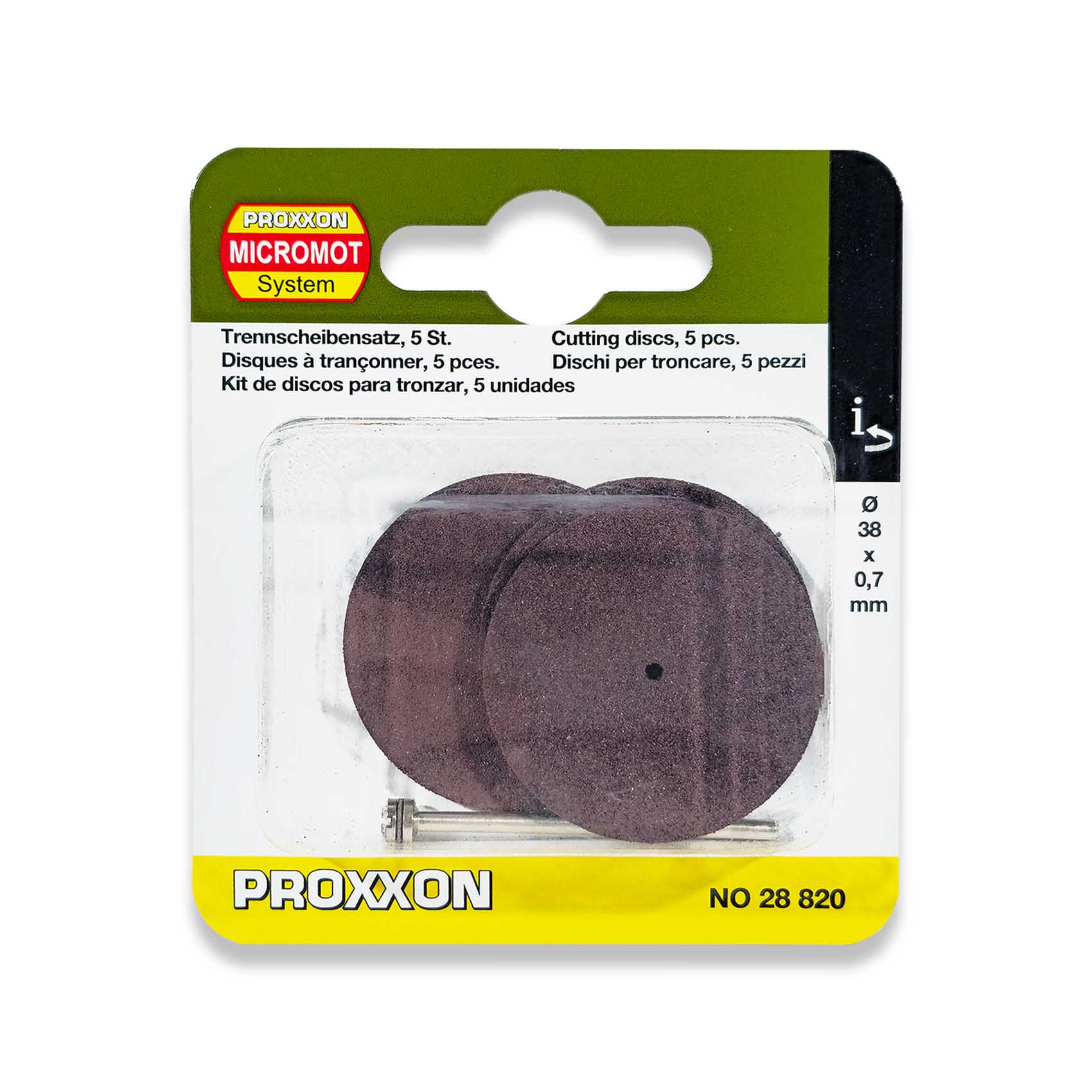 PROXXON 38MM CORUNDUM CUTTING DISCS 5 PIECES 28820 WITH ARBOR | TO PART ALLOYS AND METALS, STAINLESS STEELS AND NON-FERROUS METALS | FOR CUTTING WOOD AND PLASTIC | MADE IN GERMANY