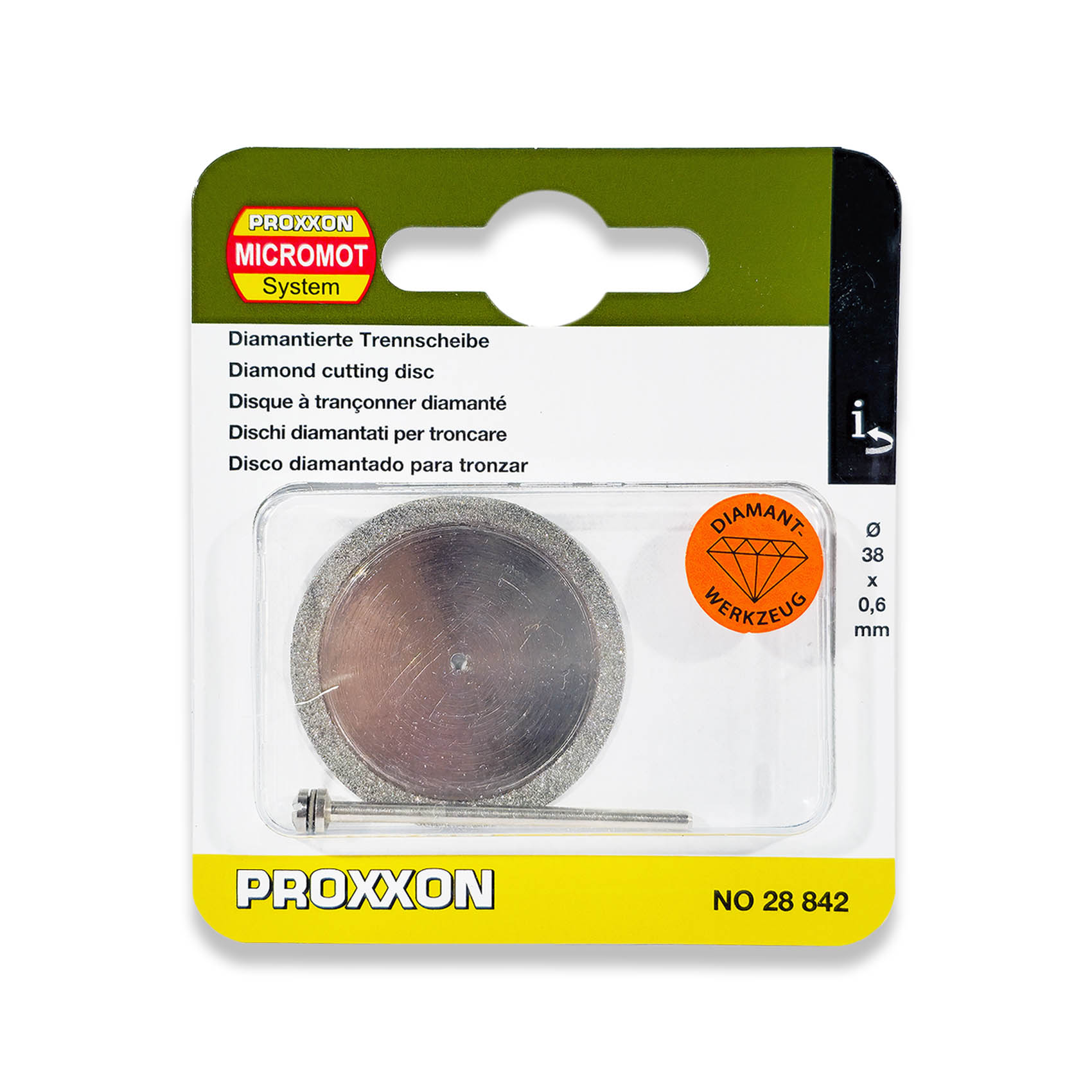 PROXXON 38X0.6MM DIAMOND CUTTING DISC WITH ARBOR 28842 | MADE IN GERMANY