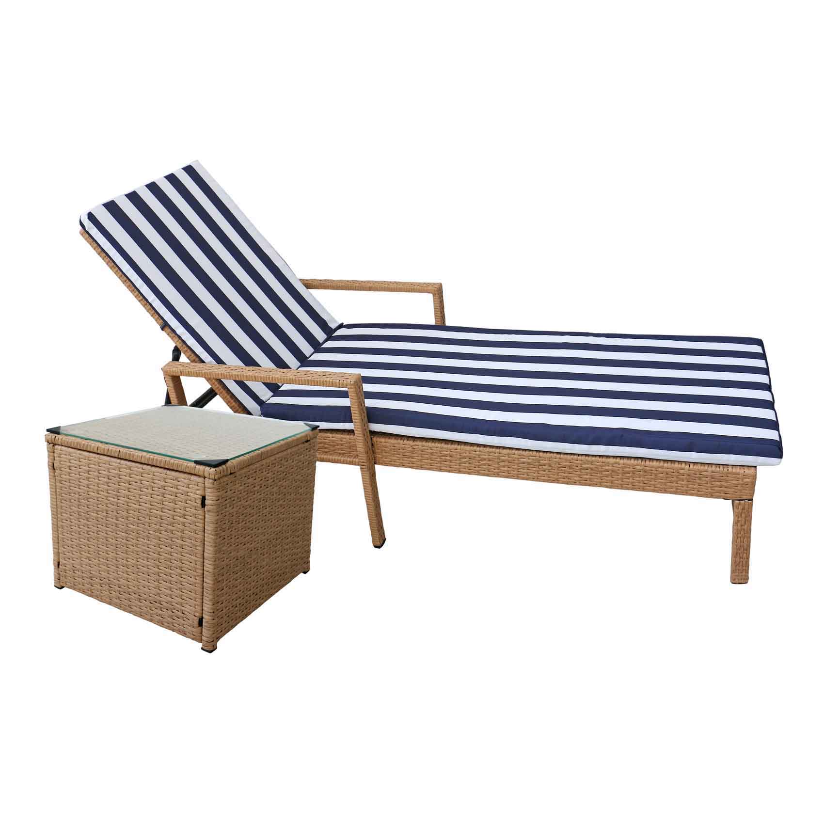 Sun Lougner:204*72*99/51cm Coffee Table:40*40*40cm Rattan:Natural Fabric: Stripe Blue and White