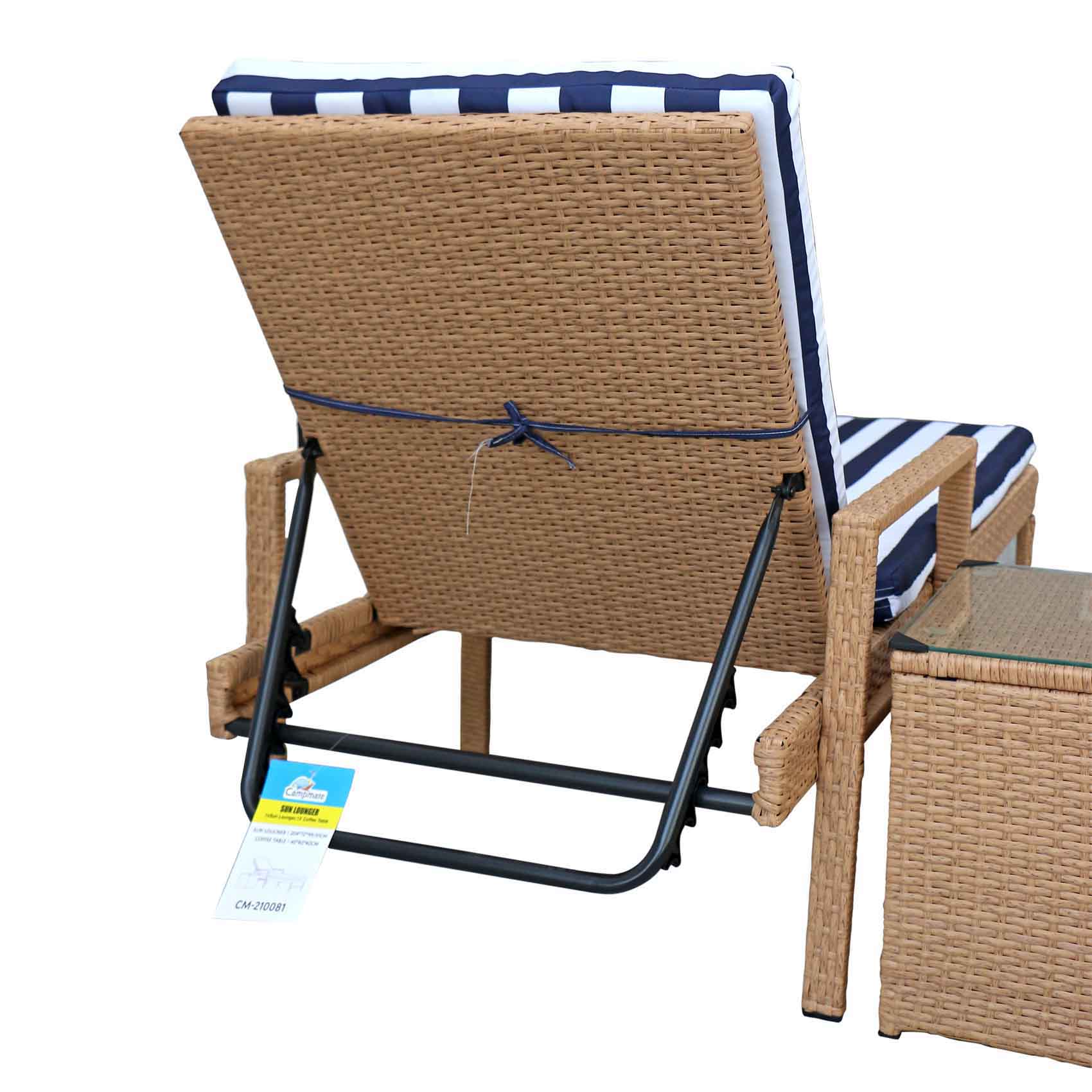 CAMPMATE 2 pcs Sun Lounger set with Cussion Including 1xSun Lounger 1X Coffee Table with glass top