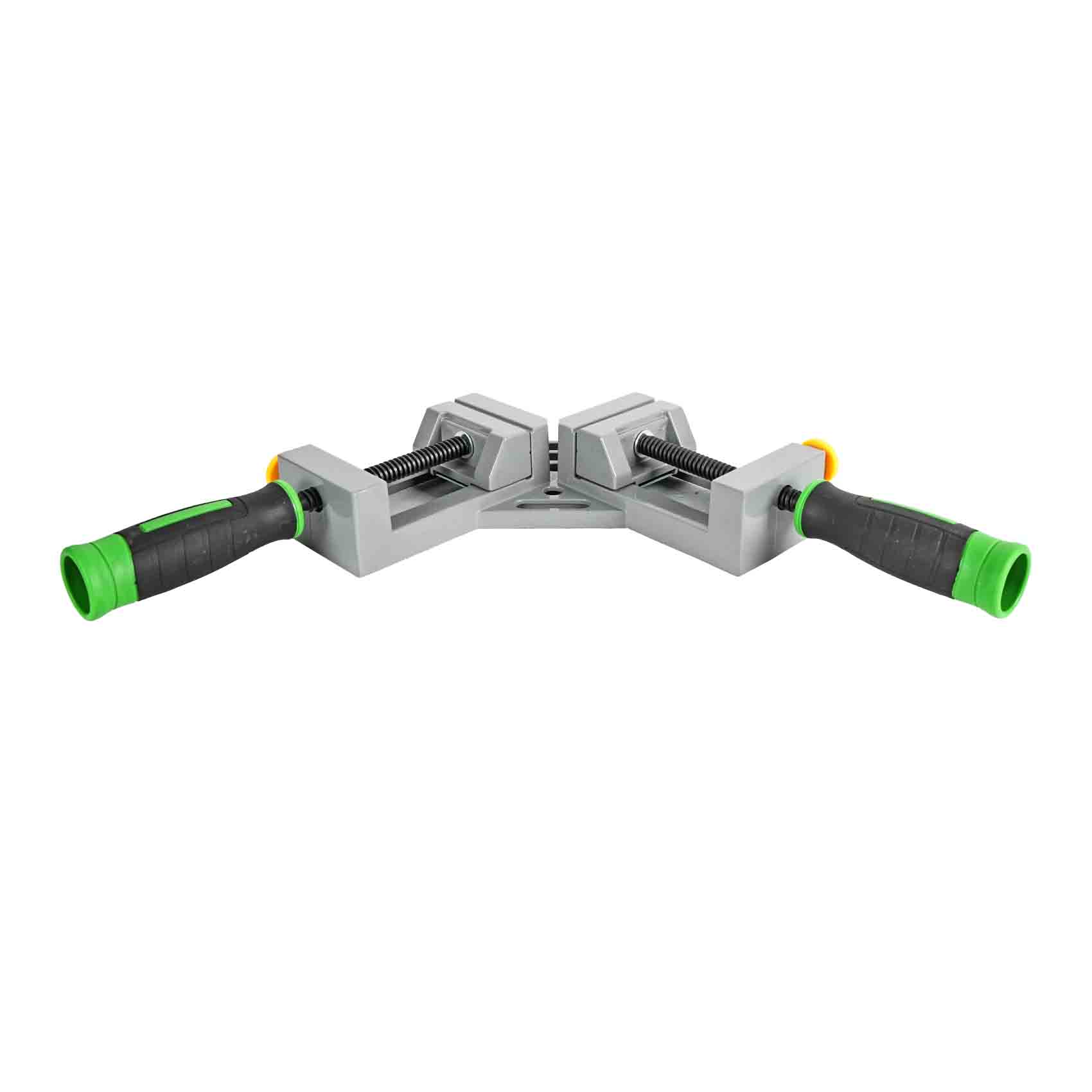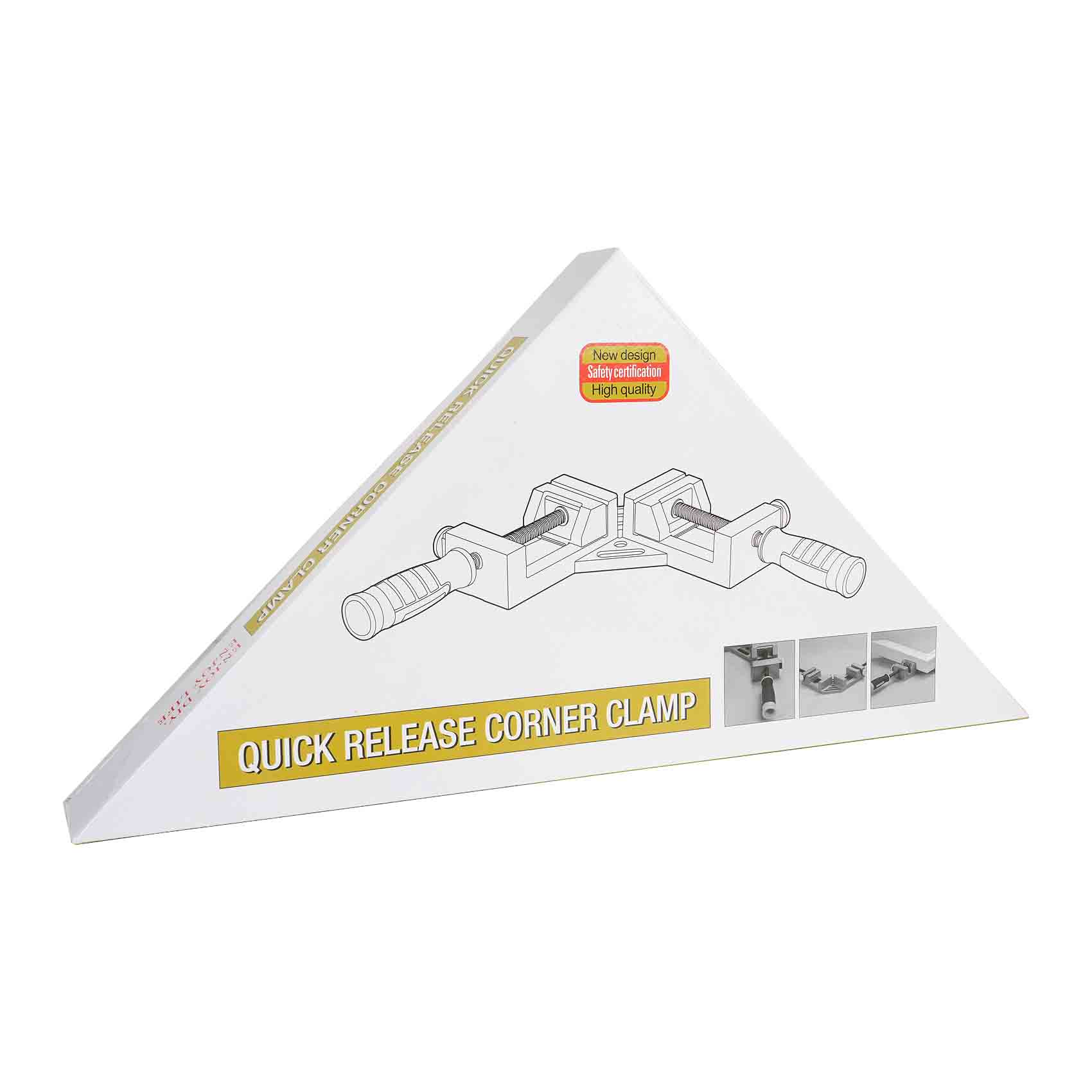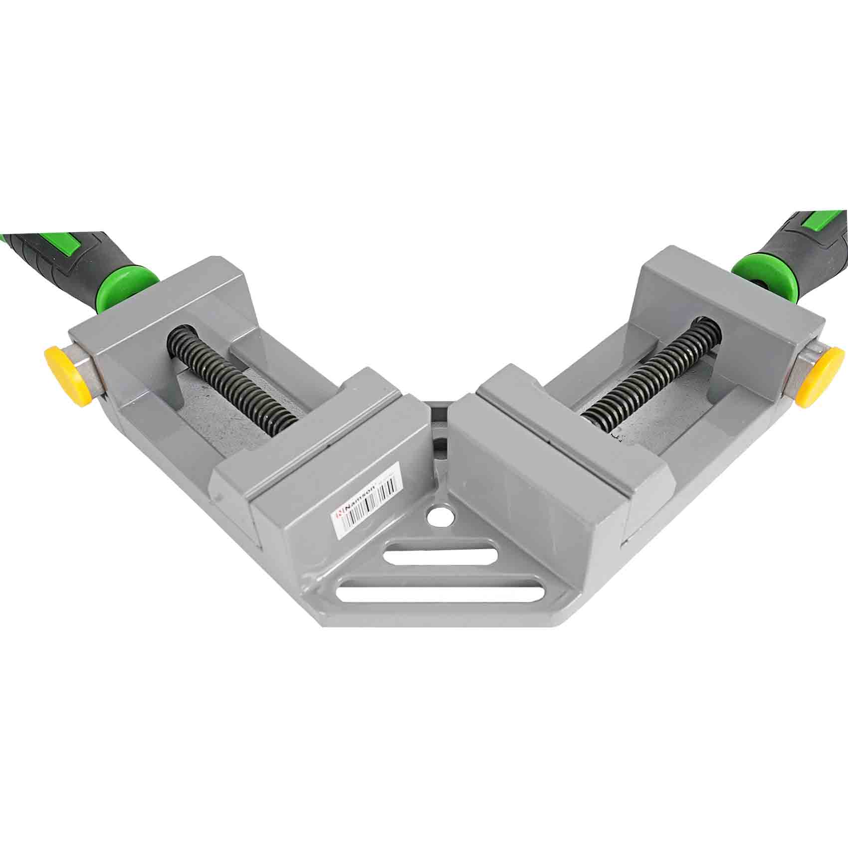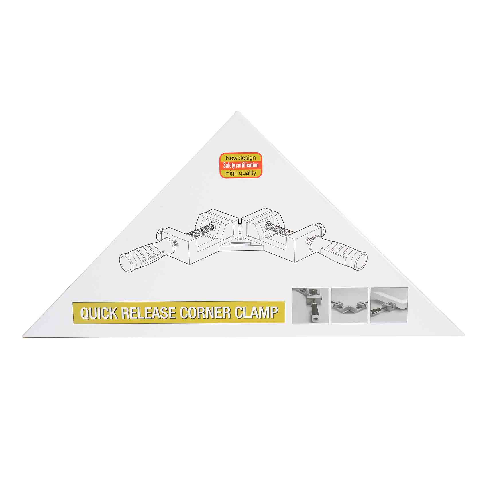 NAMSON COMPACT QUICK RELEASE 90° CORNER CLAMP IS GREAT FOR USE WITH WITH ALL DIY PROJECTS. ITS QUICK RELEASE FEATURE PERMITS RAPID OPENING AND CLOSURE OF THE JAWS OR USE THE HANDLE TO MAKE SMALLER ADJUSTMENTS. *BLACK RUBBER PADDING NOT INCLUDED*