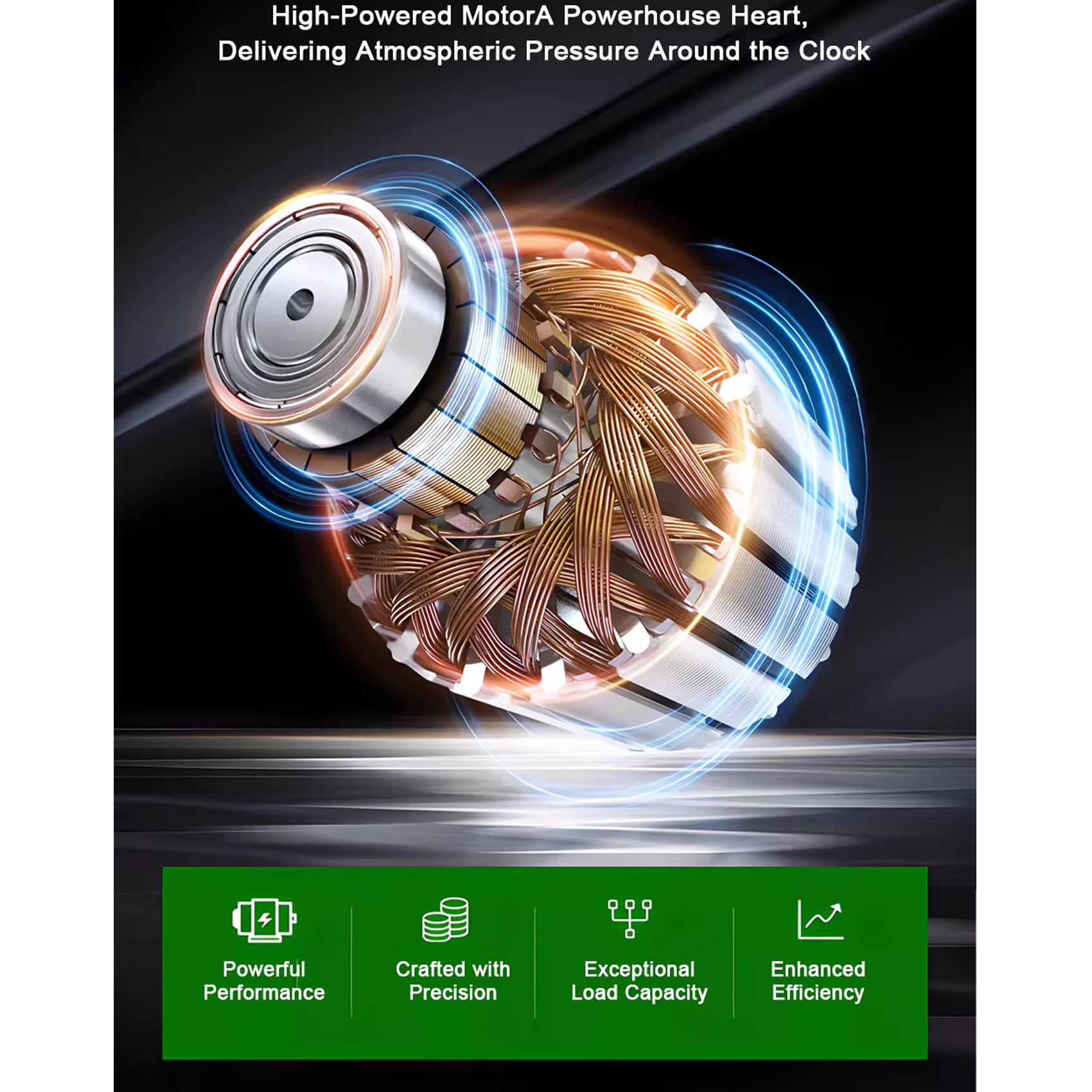 PREMIUM ELECTRIC MOTOR POWERFUL AND ROBUST : HIGH-POWERED MOTOR A POWERHOUSE HEART, DELIVERING ATMOSPHERIC PRESSURE AROUND THE CLOCK