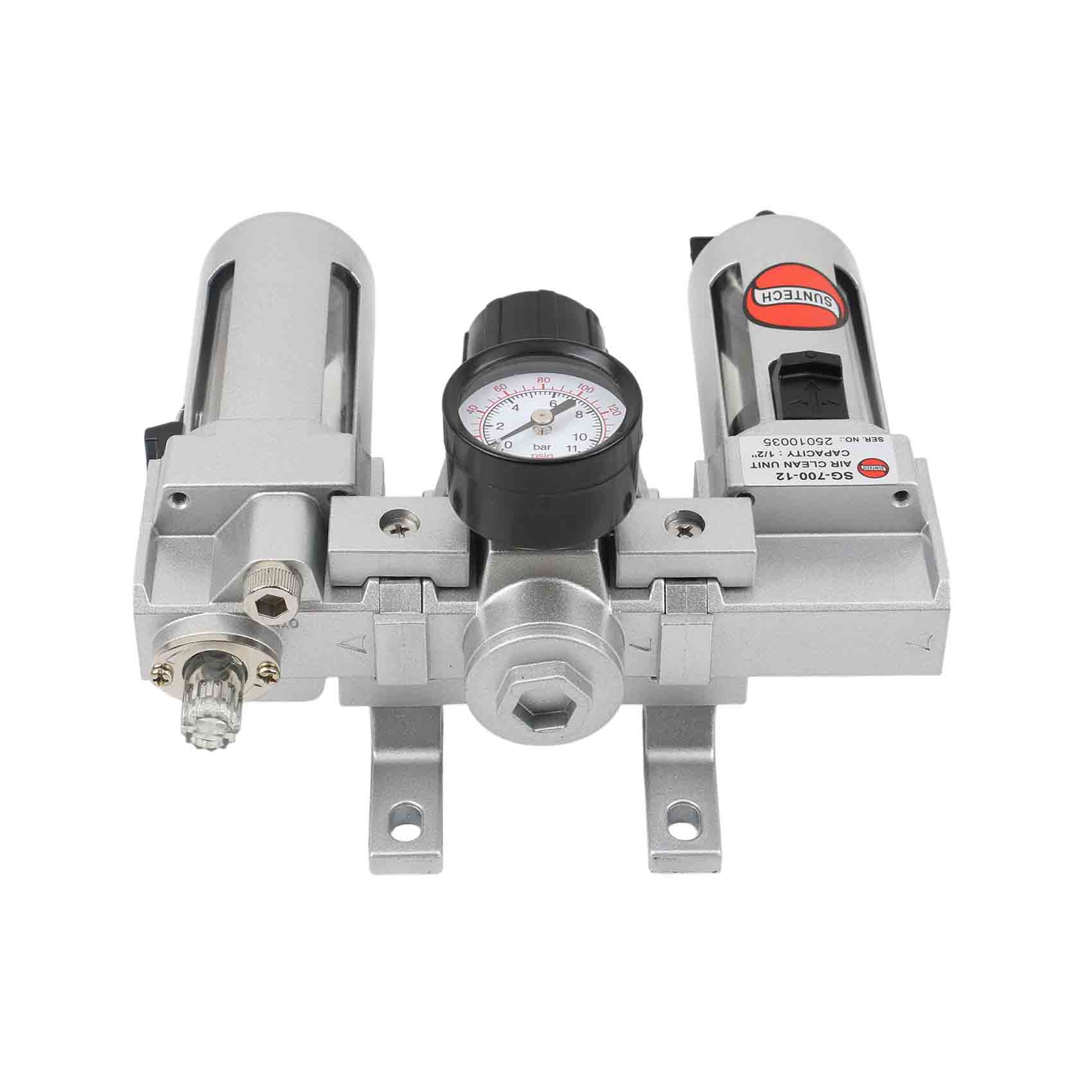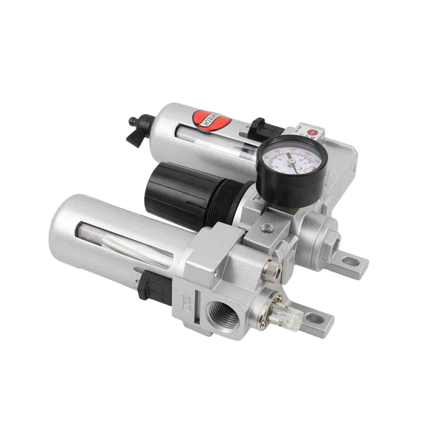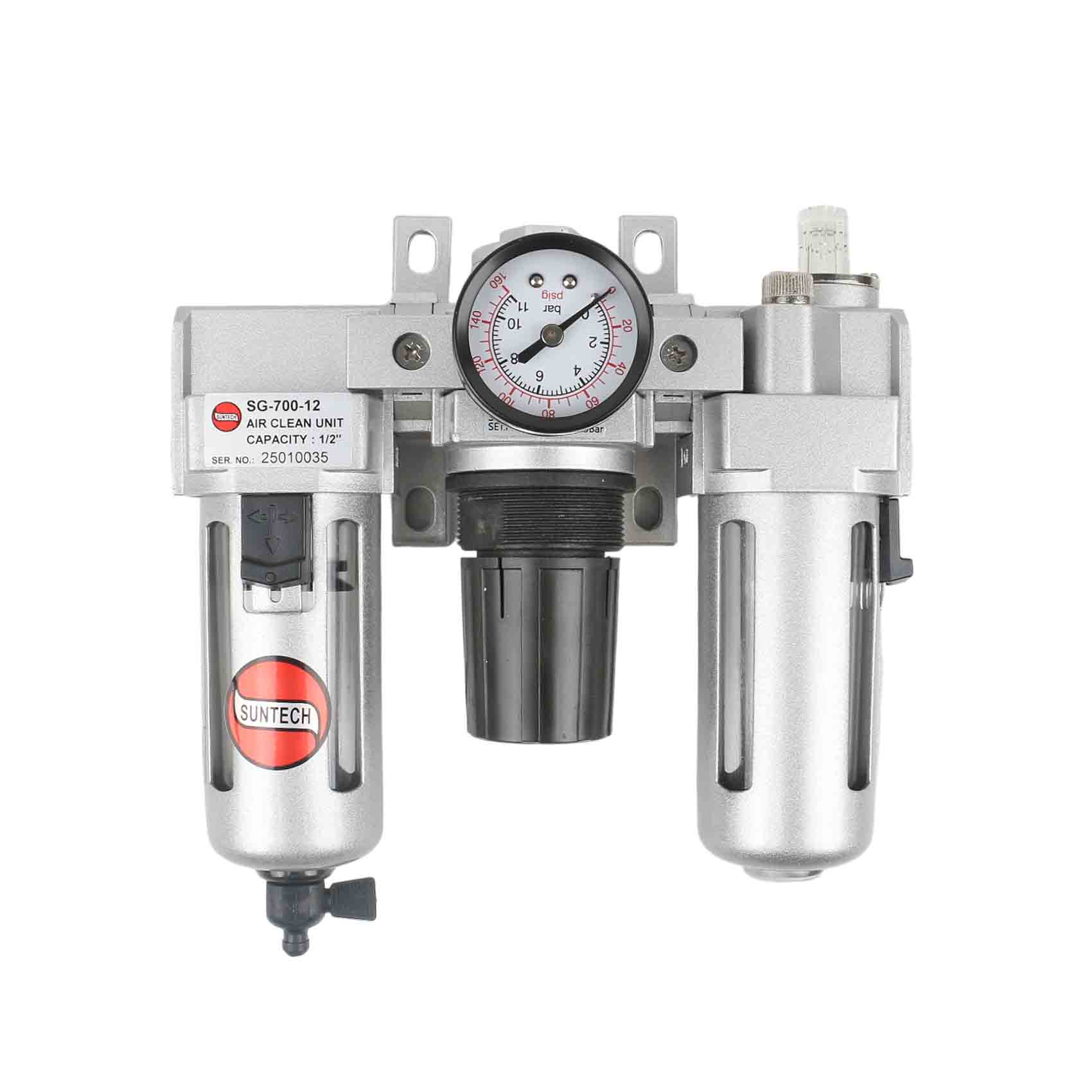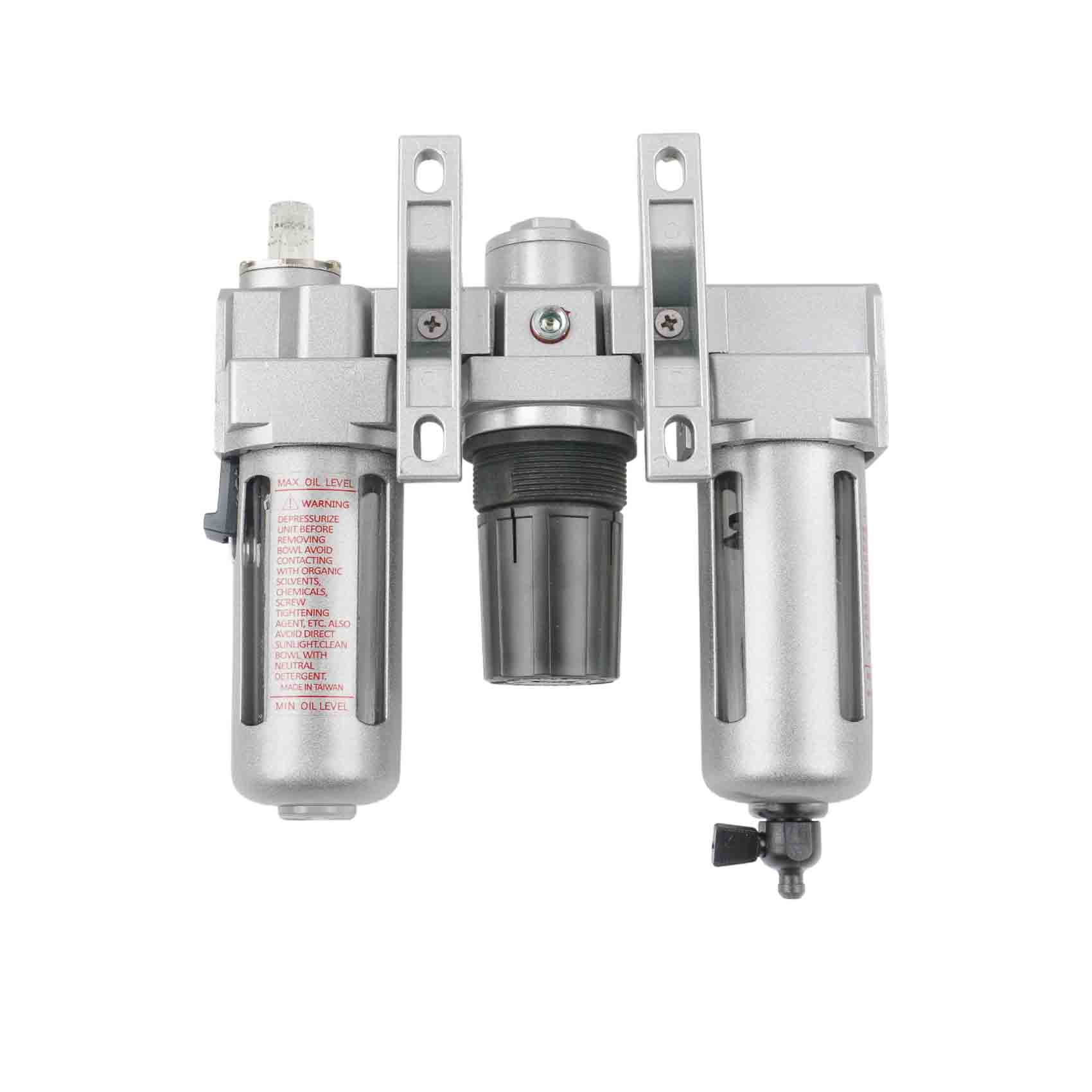 THE FILTER/REGULATOR/LUBRICATOR IS A THREE PART SYSTEM. THE FILTER IS DESIGNED TO REMOVE MOST LIQUID AND SOLID PARTICLES FROM THE AIR SUPPLY. THE SELF-RELIEVING PRESSURE REGULATOR IS USED TO ADJUST THE OUTLET PRESSURE. THE LUBRICATOR PROVIDES OIL TO THE AIR TOOL AND INCREASES THE LIFE OF THE TOOL