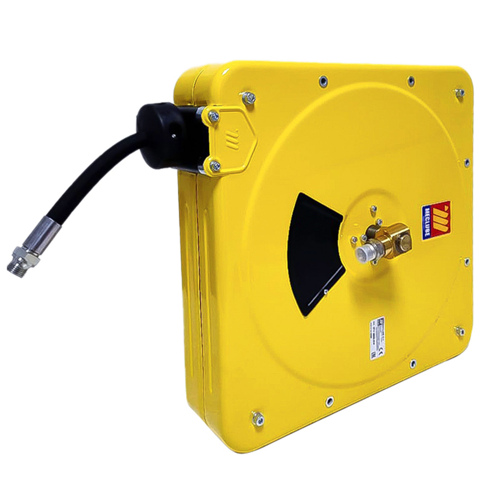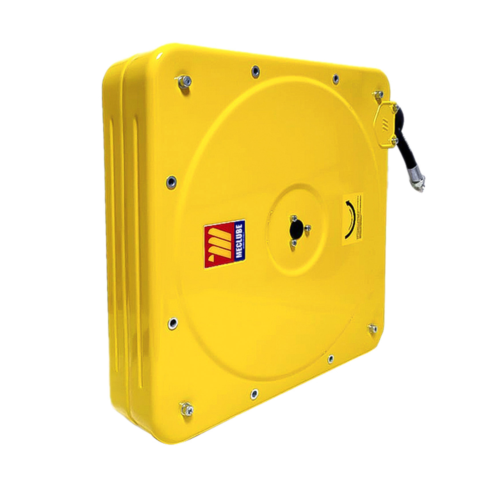 OUR AUTOMATIC HOSE REELS WITH SPRING, FIXED OR SWIVELLING, OF VARNISHED STEEL, STAINLESS STEEL AISI 304 OR MOTORIZED HYDRAULIC, PNEUMATIC AND ELECTRIC ARE SUITABLE FOR FLEXIBLE HOSES FOR THE DELIVERY OF COMPRESSED AIR, WATER, OIL OR SIMILAR, GREASE, DIESEL, GASOLINE, ANTIFREEZE, WINDSCREEN, ADBLUE® AND FOOD PRODUCTS. THEY ALLOW TO UNROLL ONLY THE NECESSARY HOSE LENGTH, IMPROVING THEIR FUNCTIONALITY. THE REWINDING OF THE HOSE IS FAST AND SAFE AND ALLOWS TO HAVE A TIDY WORKPLACE. YOU ALWAYS HAVE A READY-TO-USE EQUIPMENT THAT GRANT TO ALL THE STAFF TO WORK SAFELY.
