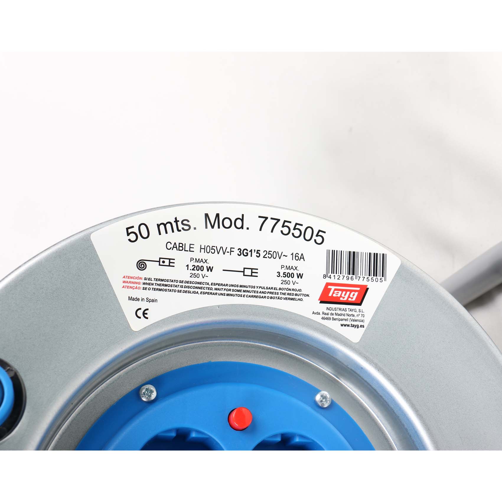 INTRODUCING THE TAYG METAL CABLE REEL (775505), A HIGH-QUALITY SOLUTION DESIGNED TO MEET YOUR ELECTRICAL POWER DISTRIBUTION NEEDS. ORIGINATING FROM SPAIN, RENOWNED FOR ITS CRAFTSMANSHIP, THIS CABLE REEL ENSURES RELIABILITY AND SAFETY FOR VARIOUS APPLICATIONS.