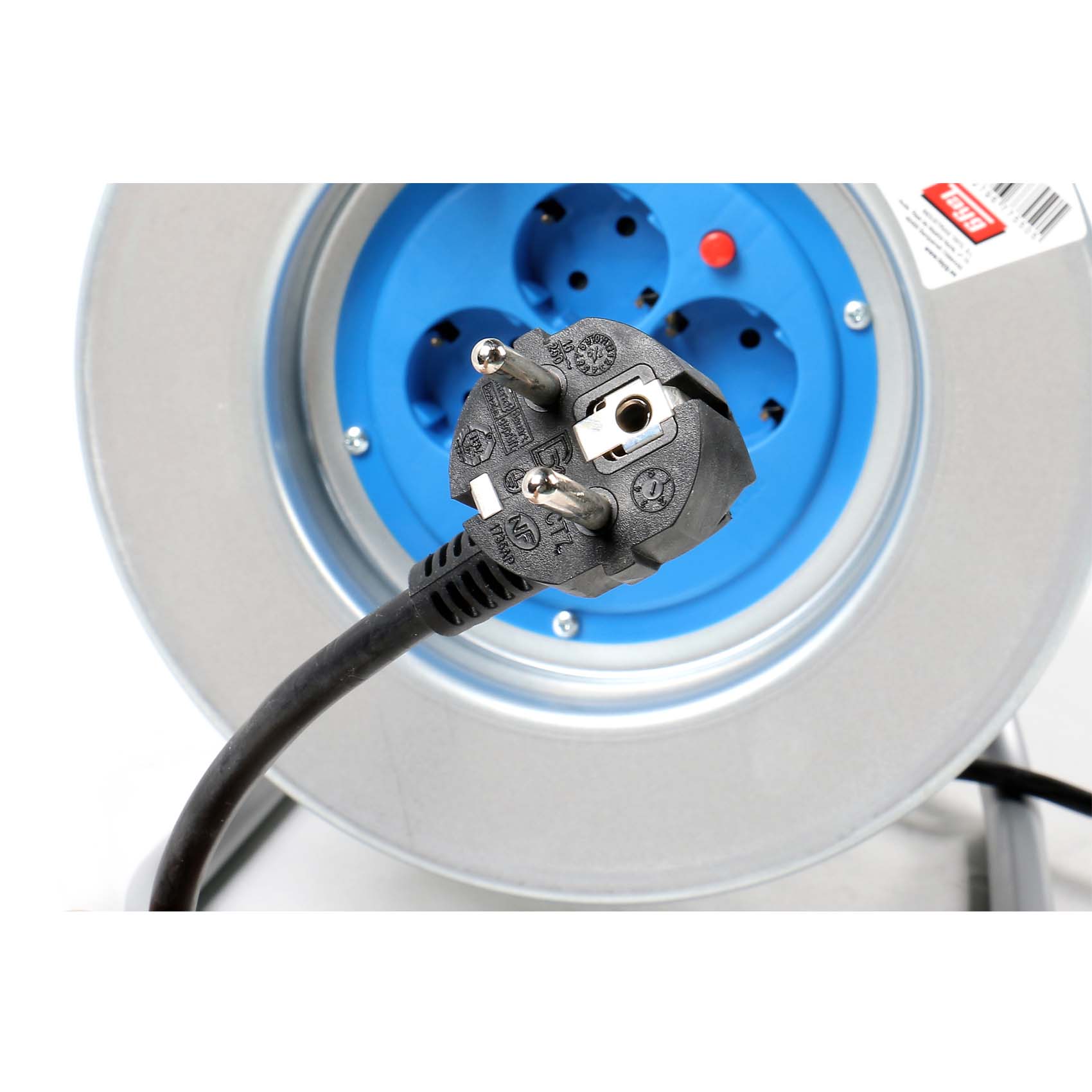 FEATURING FOUR SOCKETS (2P+T) EQUIPPED WITH THERMOSTATS, THIS CABLE REEL OFFERS ENHANCED SAFETY FEATURES, PROTECTING AGAINST ELECTRICAL HAZARDS AND ENSURING PEACE OF MIND DURING OPERATION.