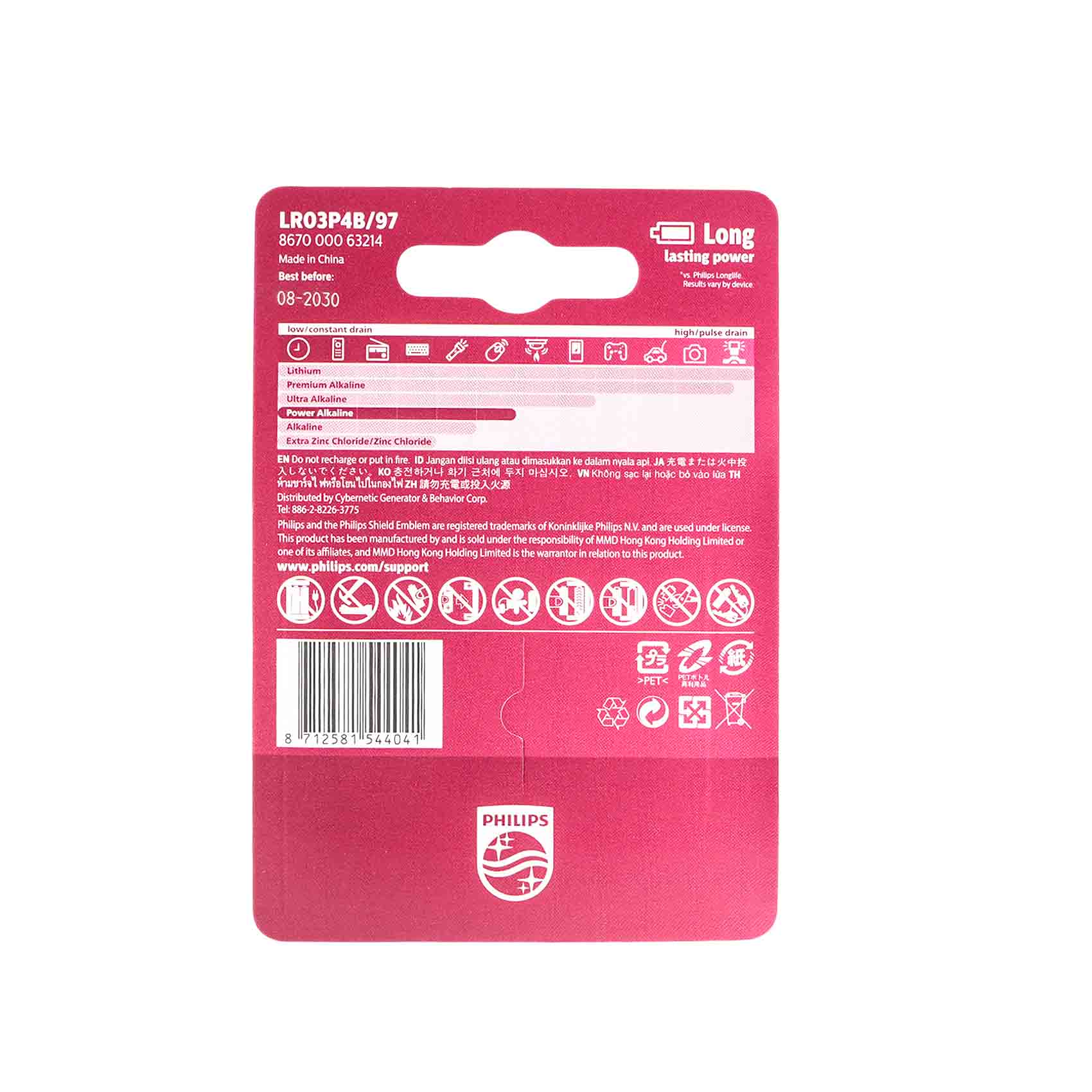 PHILIPS 4 PIECES POWER ALKALINE BATTERY AAA 1.5V 4PCS LR03P4B/97