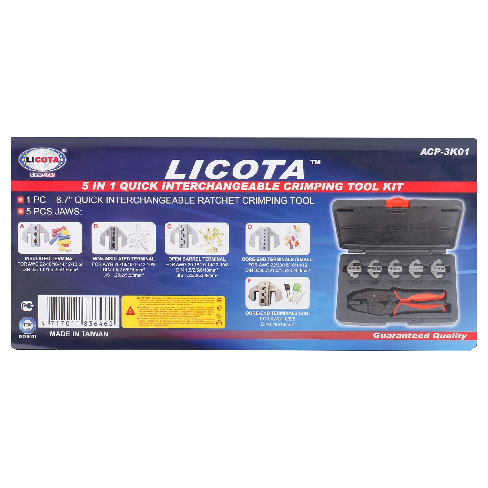 LICOTA 5IN1 QUICK INTERCHANGE CRIMPING TOOL KIT ACP-3K01 | MADE IN TAIWAN