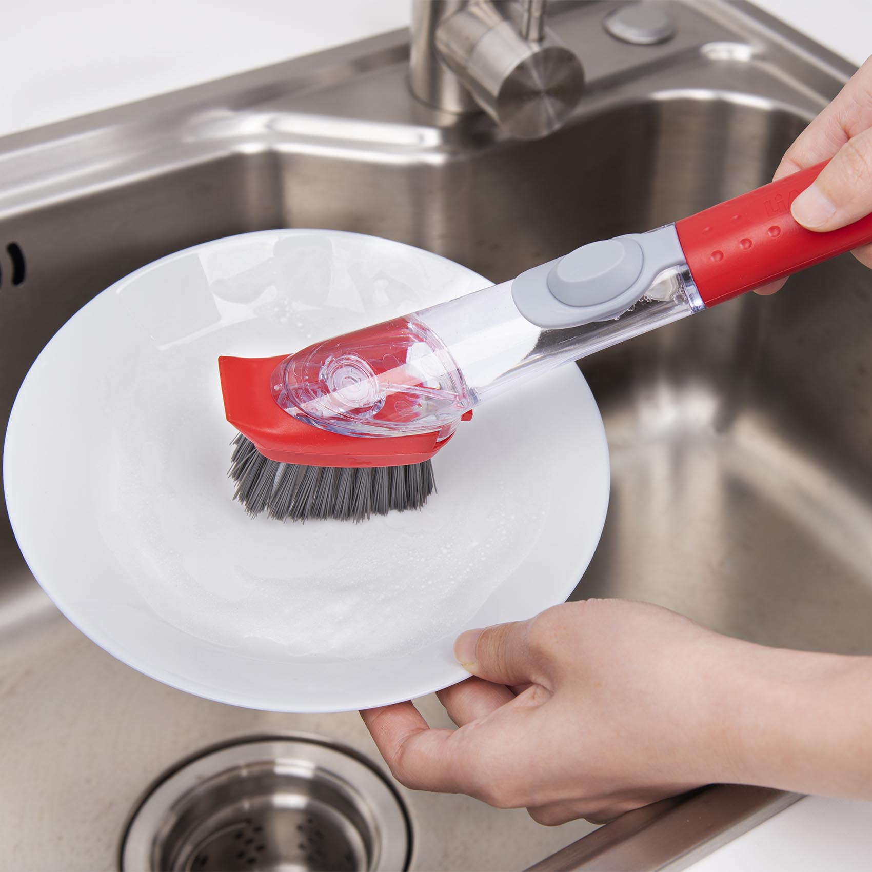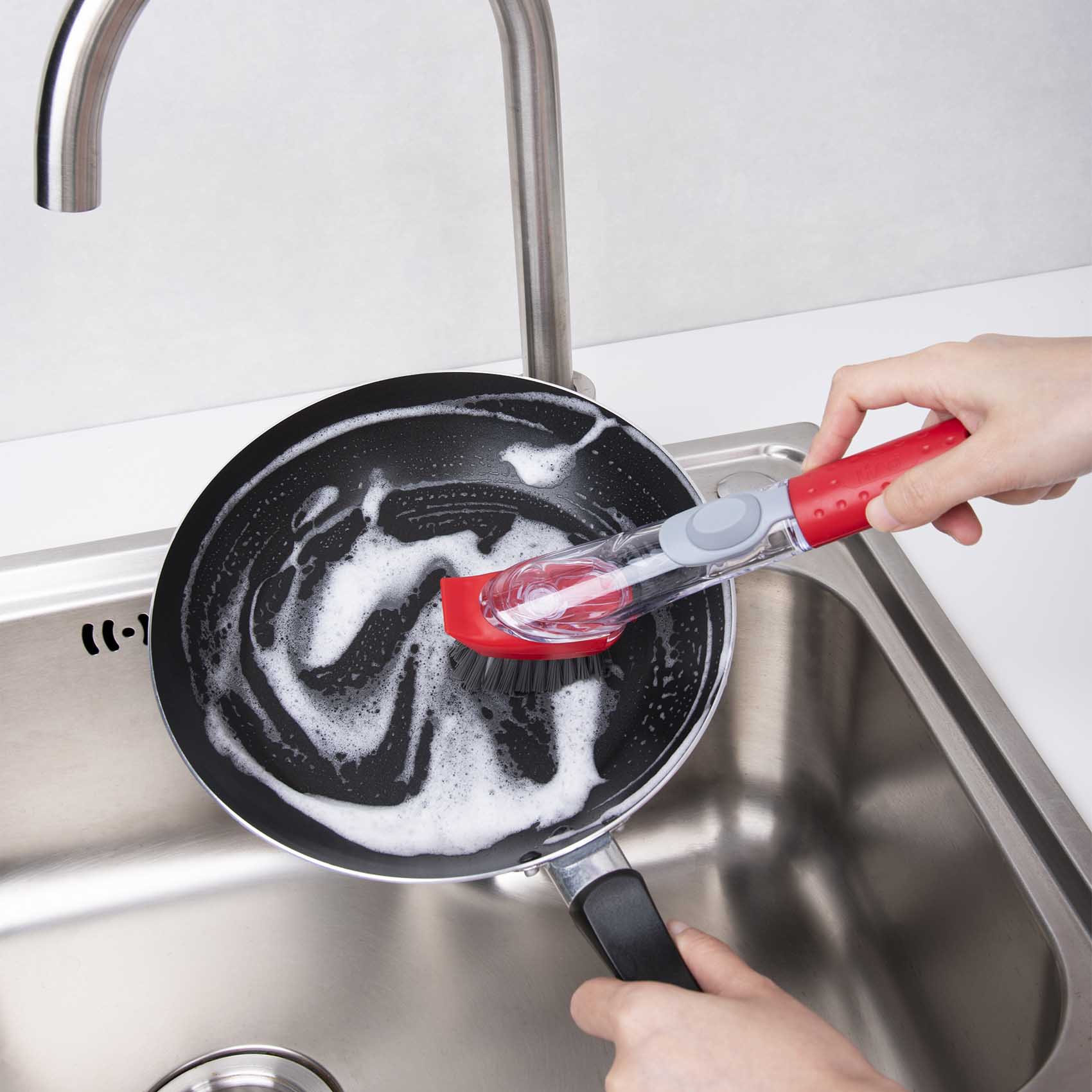 NAMSON 3.3" SOAP DISPENSING DISH BRUSH DITACHABLE HEAD NA-8141 WASHING UP BRUSHES WITH LONG HANDLE | KITCHEN BRUSH FOR PANS POTS SINK