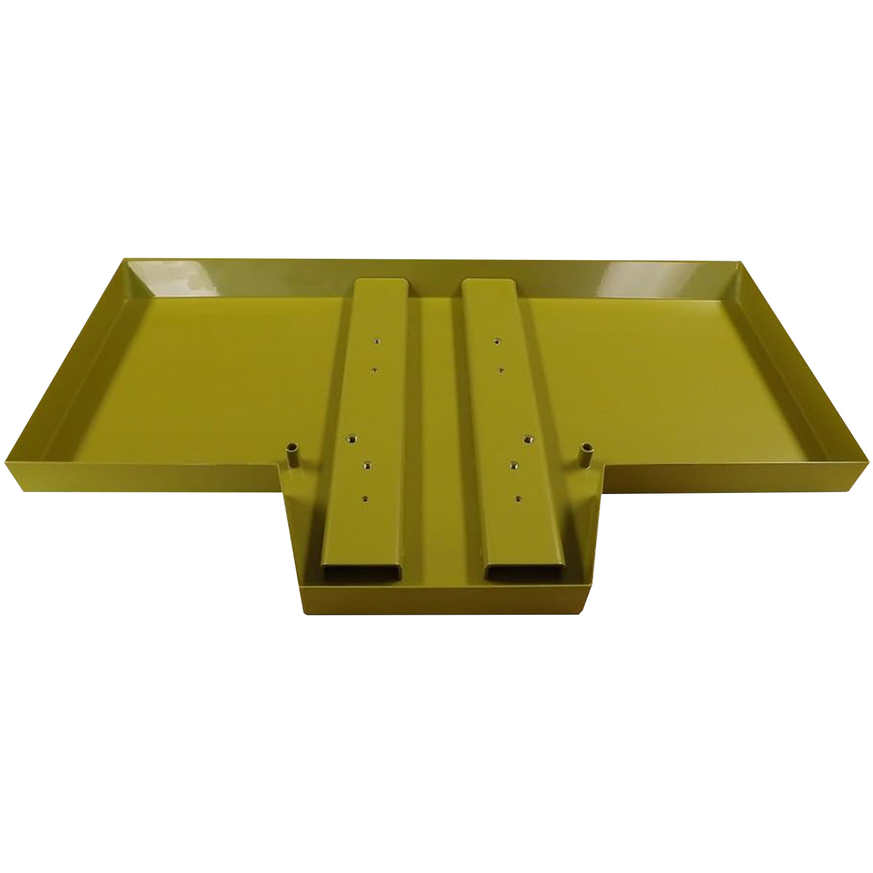 . SECURE STAND DUE TO DRILL HOLES FOR FASTENING TO A WORK SURFACE THE USE OF STEEL SLEEVES KEEPS THE TRAY TIGHTLY SEALED.