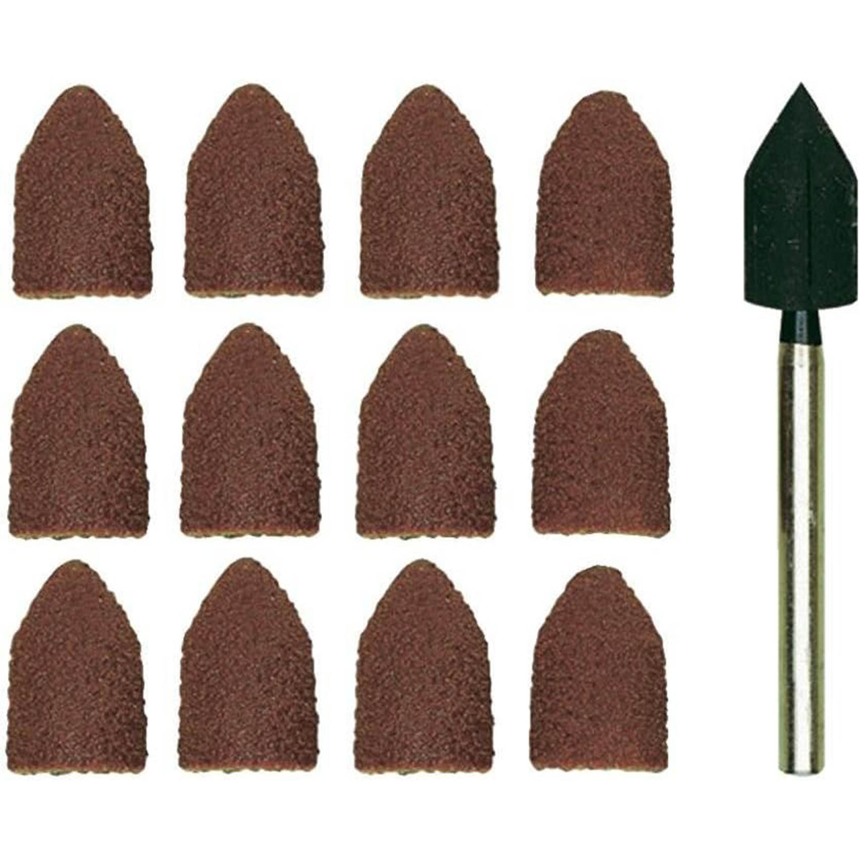 USES : FOR SANDING, SMOOTHING AND POLISHING OF MALLEABLE CAST IRON, GREY CAST IRON, STAINLESS STEEL, STEEL, NON-FERROUS METALS, WOOD AND PLASTIC. CAN ALSO BE USED FOR CHAMFERING. ADAPT THE ROTATIONAL SPEED TO THE MATERIAL TO BE SANDED: STEEL HIGH, WOOD MEDIUM, PLASTIC LOW. SANDING DISCS AND CAPS CAN ALSO BE USED FOR REFINISHING RADII AND GROOVES.