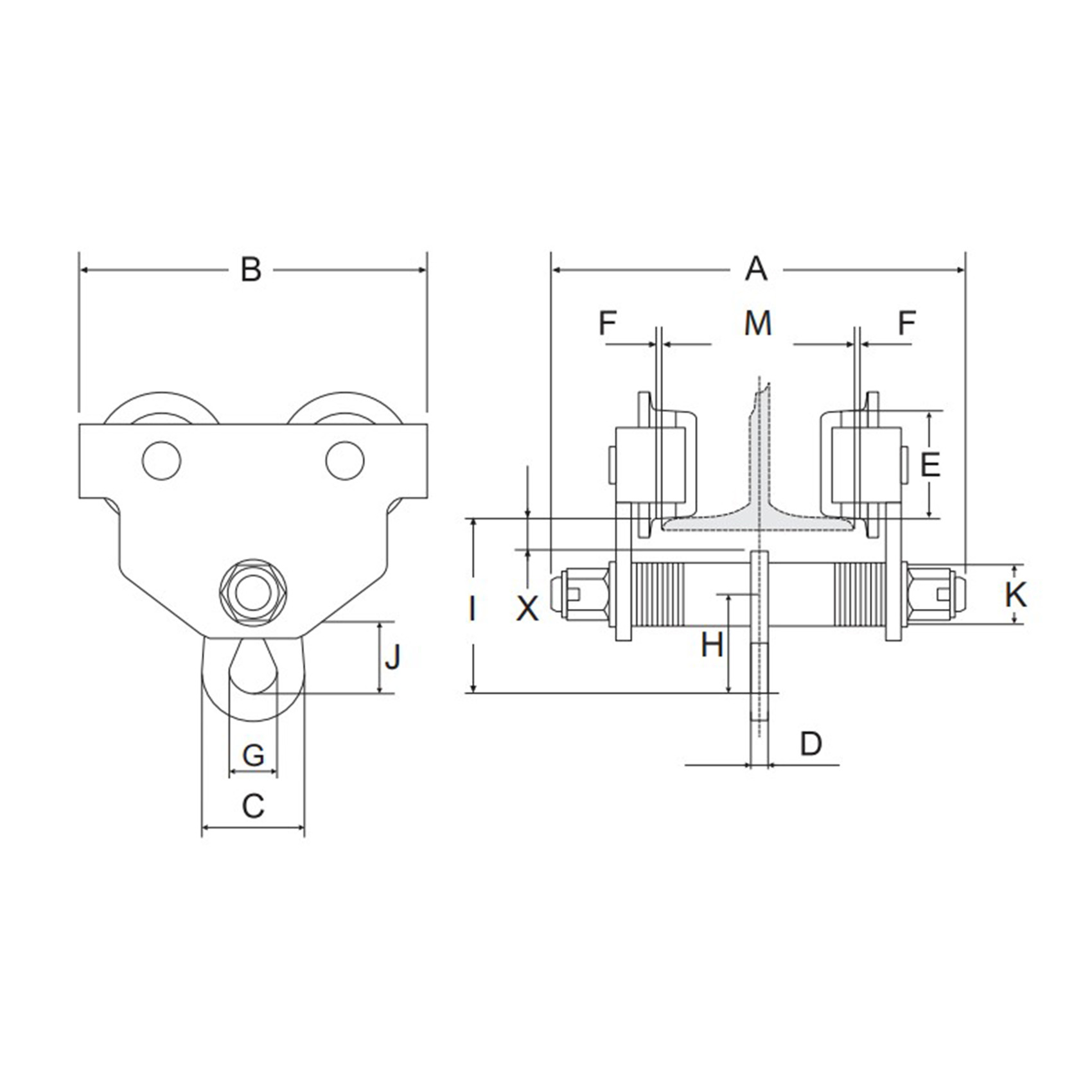 REMA 3 TON PUSH TROLLEY 100-203MM 116-3.0 0921007 | ADJUSTABLE FLANGE | VARIOUS PROFILES, WITH FLAT OR BEVEL FLANGE | SOLID STEEL MACHINED WHEELS | MAINTENANCE-FREE BALL BEARINGS | MADE IN HOLLAND