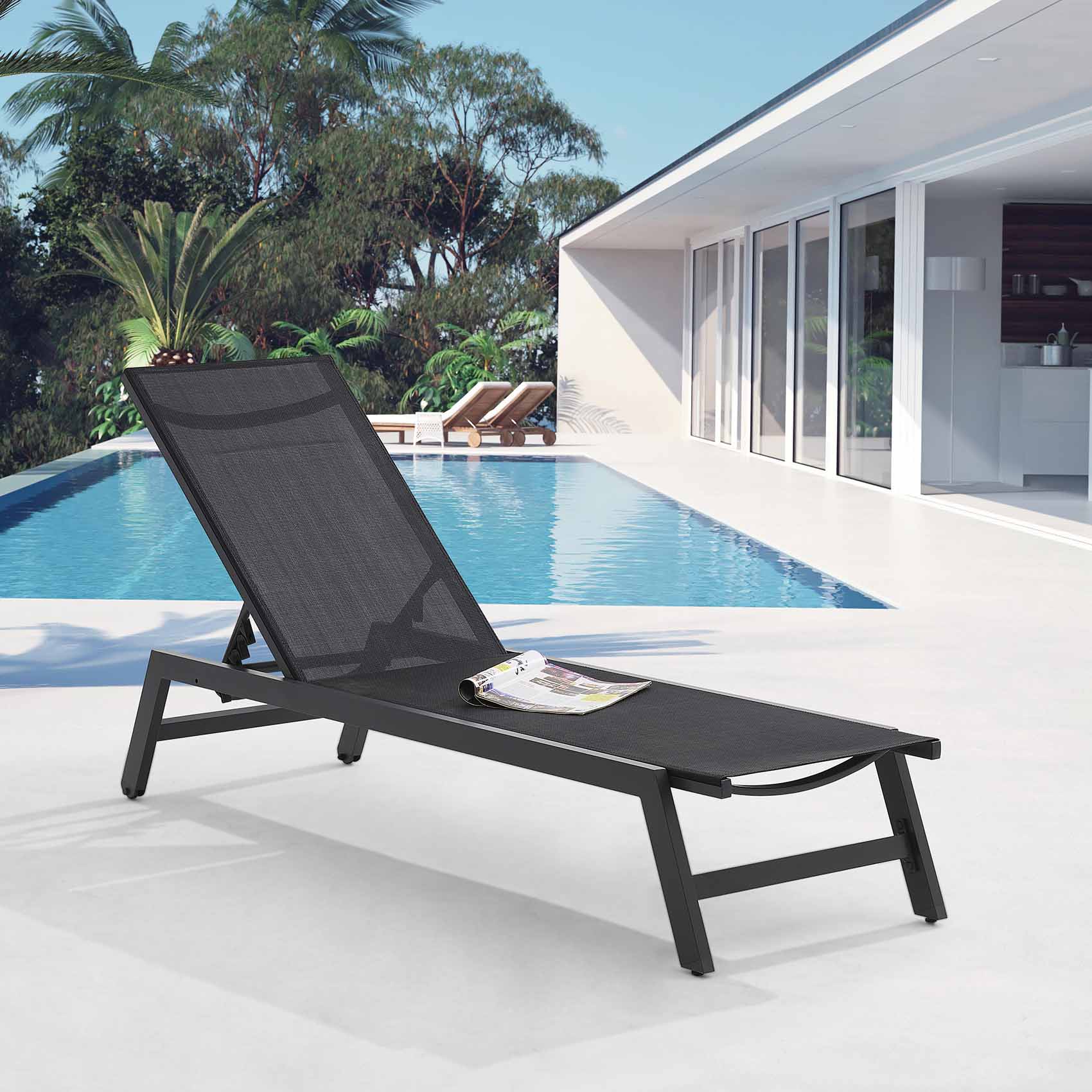 THE CAMPMATE TEXTILENE SUNBED ADJUSTABLE LEISURE CHAIR CM-210589 IS A STYLISH AND COMFORTABLE ADDITION TO ANY OUTDOOR SETTING, PERFECT FOR RELAXATION IN THE SUN. CONSTRUCTED WITH DURABLE TEXTILENE BREATHABLE POLYESTER MESH FABRIC, IT PROVIDES EXCELLENT AIRFLOW, KEEPING YOU COOL AND COMFORTABLE EVEN ON WARM DAYS. THE FABRIC’S BLACK COLOR COMPLEMENTS THE SLEEK BLACK FRAME, CREATING A MODERN AESTHETIC SUITABLE FOR ANY PATIO, POOLSIDE, OR BEACH SETUP. THIS SUNBED OFFERS GENEROUS DIMENSIONS, MEASURING 192 CM IN LENGTH, 56 CM IN WIDTH, AND AN ADJUSTABLE HEIGHT RANGE FROM 31.5 TO 91 CM. ITS ADJUSTABLE BACKREST ALLOWS YOU TO FIND THE PERFECT RECLINING ANGLE FOR READING, LOUNGING, OR NAPPING, MAKING IT VERSATILE FOR VARIOUS OUTDOOR ACTIVITIES. DESIGNED FOR LONG-LASTING USE AND EASY MAINTENANCE, THIS CHAIR COMBINES FUNCTIONALITY WITH STYLE, PROVIDING A RELIABLE AND COMFORTABLE LOUNGING EXPERIENCE WHEREVER YOU ARE. MADE IN CHINA