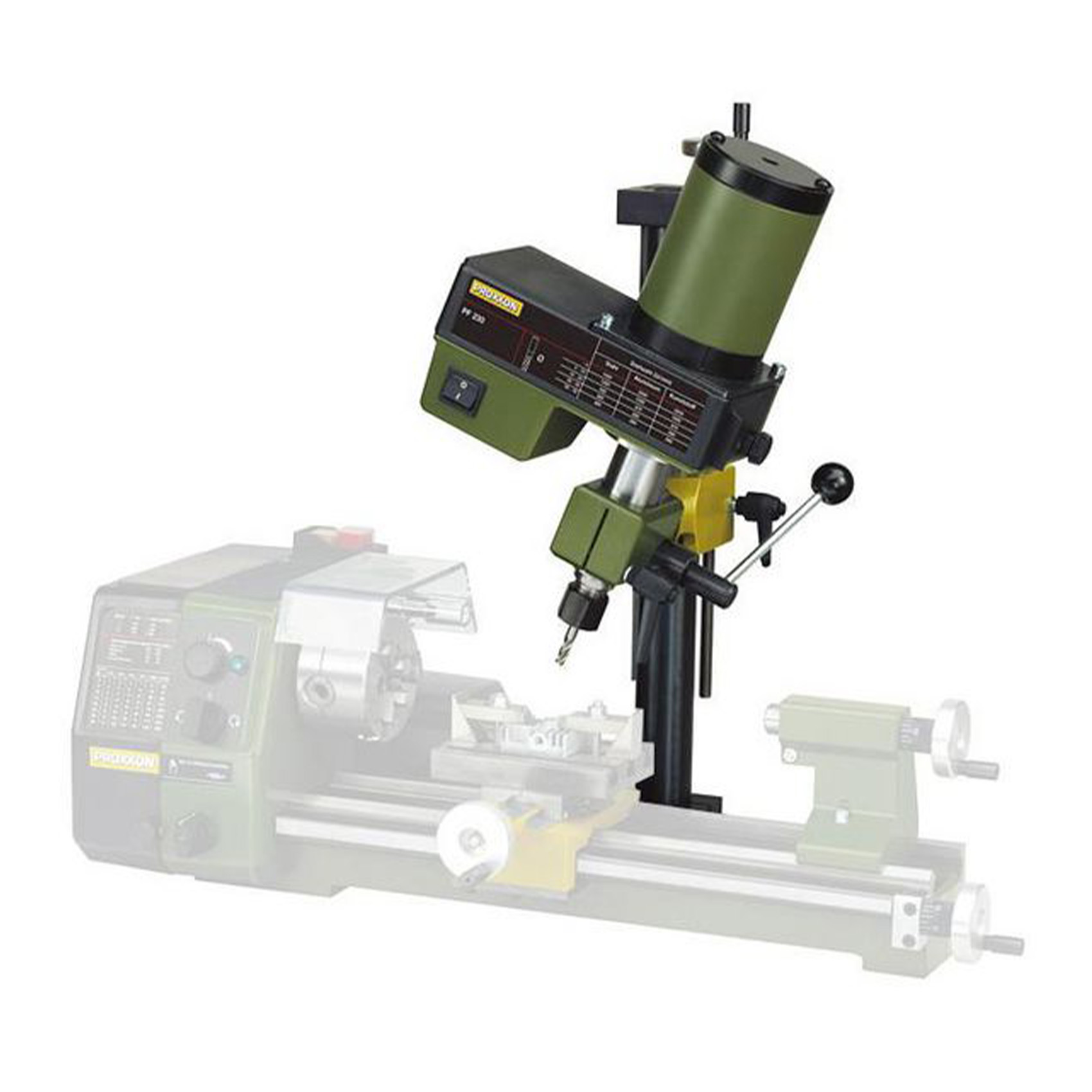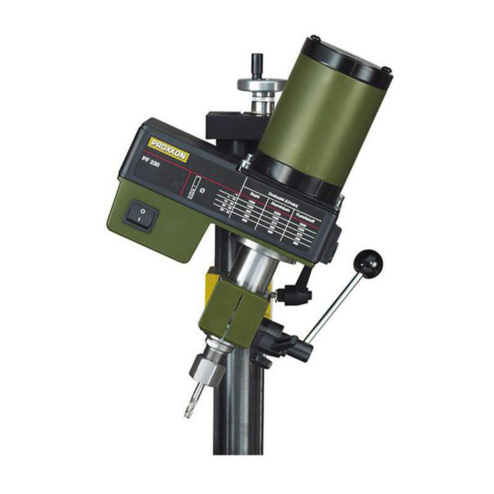 PROXXON 34MM MILL AND DRILL HEAD PF 230 FOR LATHE PD 400 24104 INCLUDES COLUMN (35 X 400 MM), MOUNTING BRACKET AND FASTENING SCREWS | THREE COLLETS OF SIZES 6 - 8 AND 10MM ARE INCLUDED | SPINDLE REVOLUTIONS 280 - 550 - 870 - 1,200 - 1,500 AND 2,200/MIN | MADE IN GERMANY