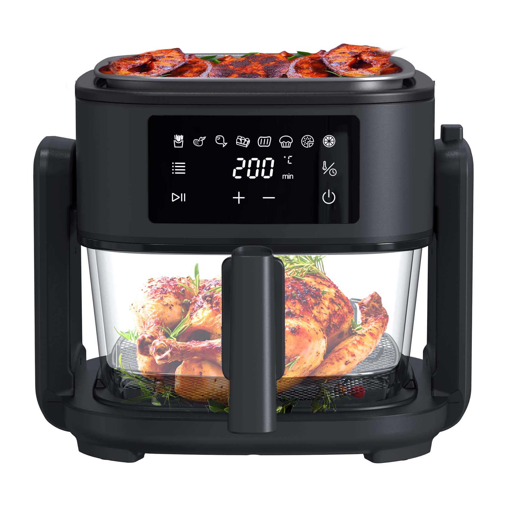 ADJUSTABLE TEMPERATURE : 80°-200° (AIR FRYER FUNCTION) - 120°-220° ( GRILL FUNCTION)