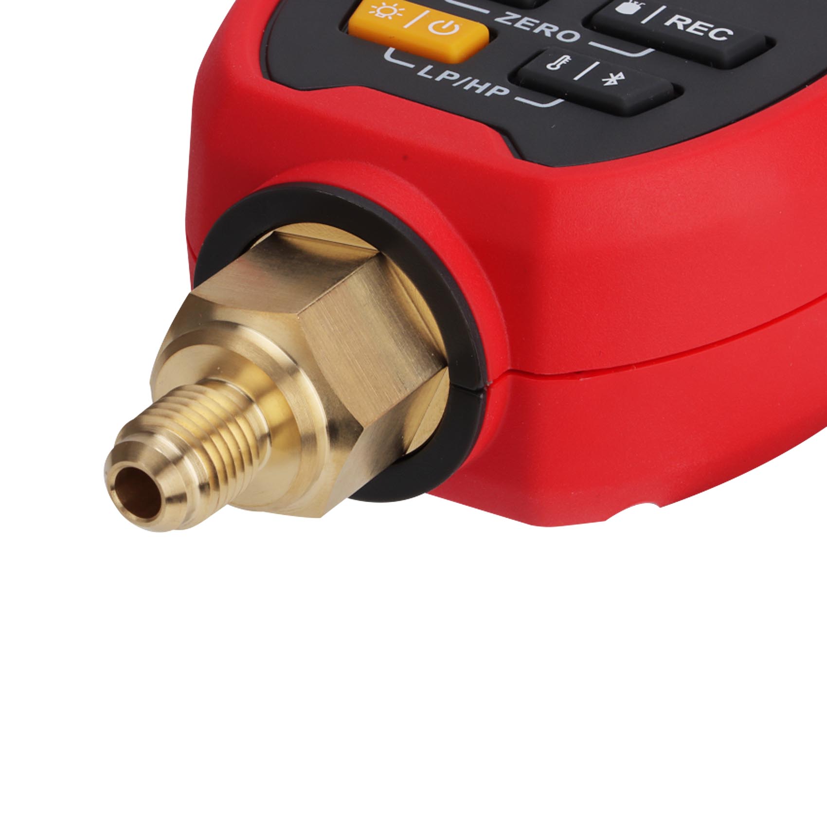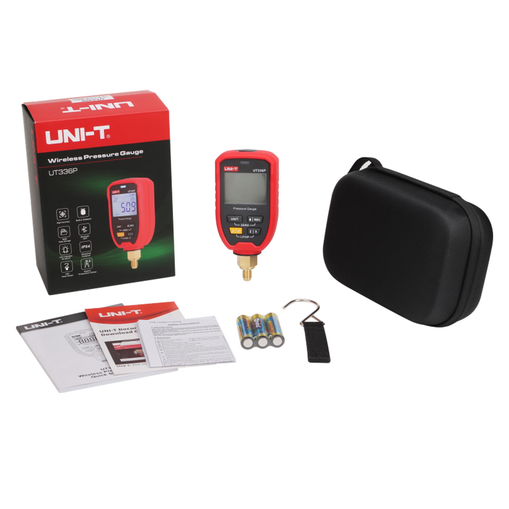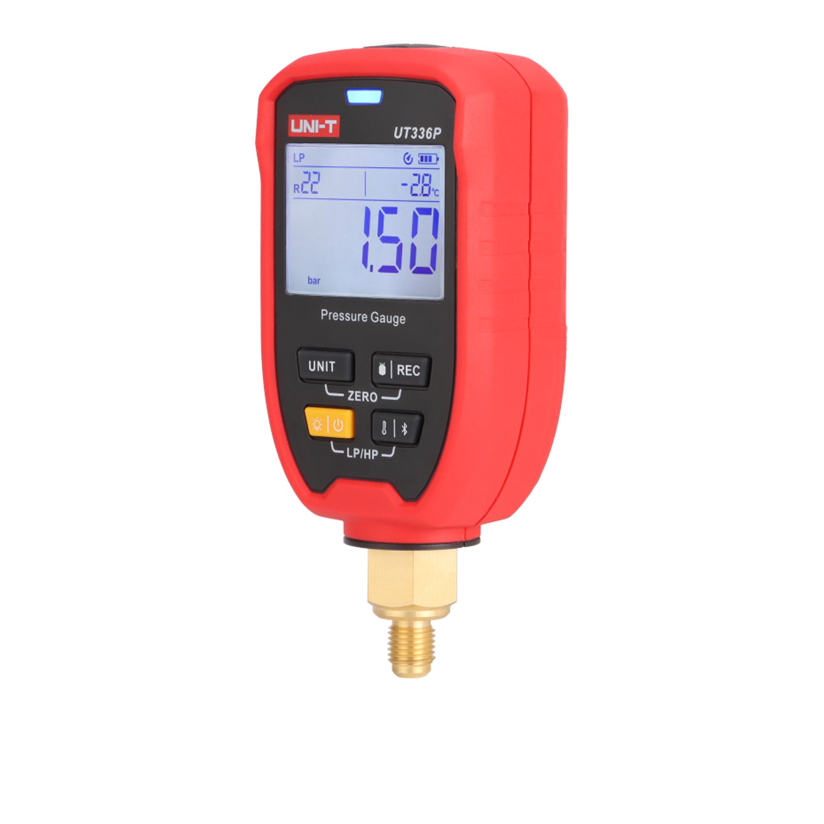 UT336P KIT ALLOWS USERS TO PURCHASE A PRESSURE GAUGE, TEMPERATURE CLAMP, AND SMALL CONNECTION ACCESSORIES IN ONE GO. IT IS SPECIFICALLY DESIGNED FOR THE INSTALLATION, DEBUGGING, AND MAINTENANCE OF REFRIGERATION AND HEAT PUMP SYSTEMS. IT ACCURATELY MEASURES SYSTEM PRESSURE AND FEATURES OFFLINE DATA LOGGING, SUPPORTING LONG-TERM REAL-TIME MONITORING. UT336P IS EQUIPPED WITH A 3.5MM TEMPERATURE CLAMP INTERFACE, AND WHEN USED WITH THE UT-T19 TEMPERATURE CLAMP, USERS CAN VIEW KEY DATA SUCH AS HIGH/LOW PRESSURE REFRIGERANT PIPE TEMPERATURE AND SUPERHEAT/SUBCOOLING ON THE APP, ENSURING EFFICIENT AND STABLE SYSTEM OPERATION. IT IS SUITABLE FOR A WIDE RANGE OF REFRIGERATION AND AIR CONDITIONING APPLICATIONS.