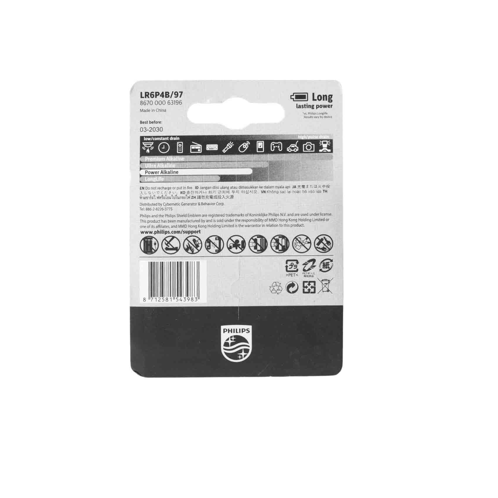 4-Piece Power Alkaline LR6 Battery Set White/Red/Silver 7x11x2 centimeter 1.5V LR6P4B/97