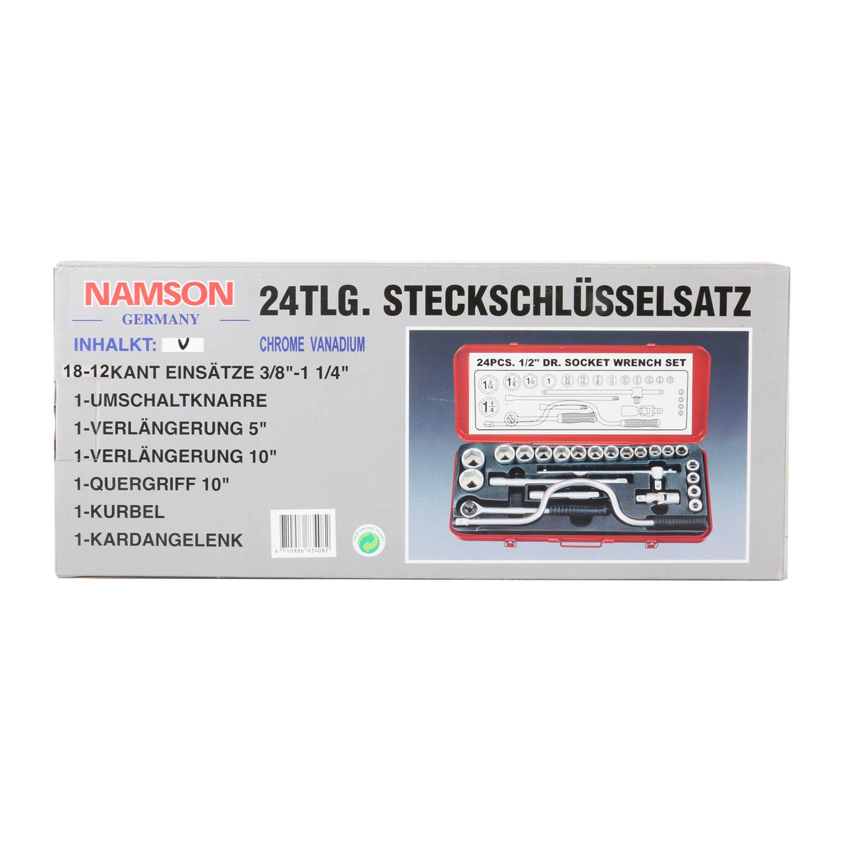 The NAMSON 24 PCS 3/8" Drive Socket Set is designed to tighten and loosen nuts and bolts efficiently in automotive, mechanical, and industrial applications. This professional tool kit provides a complete solution for technicians, mechanics, and DIY users who require reliable and durable tools for daily repair, maintenance, and assembly work.