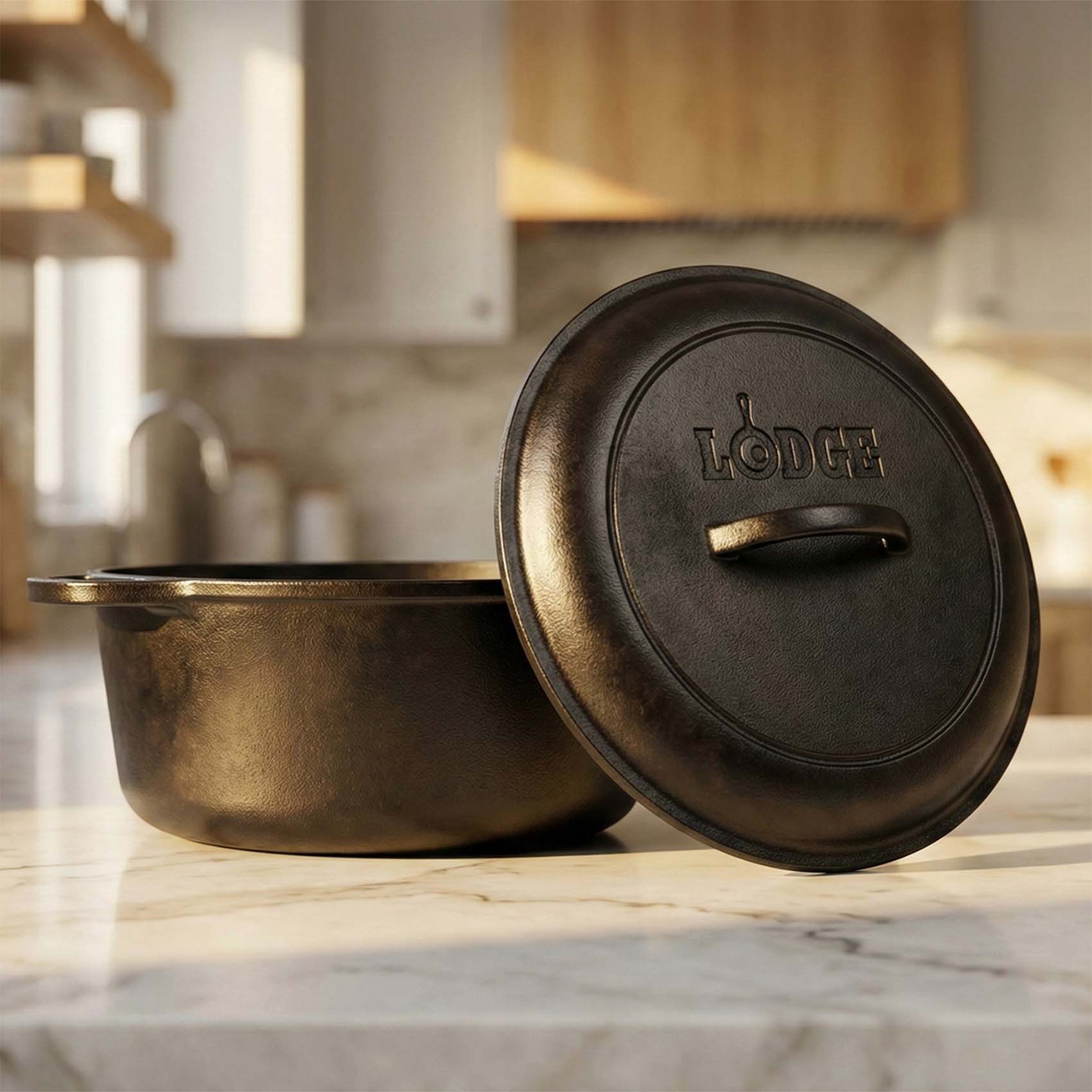 The LODGE 5 Quart Cast Iron Dutch Oven L8DOL3 is a durable and versatile cookware essential designed for a wide range of cooking applications. Built with premium cast iron and a naturally seasoned surface, it delivers excellent heat retention and consistent cooking performance.
