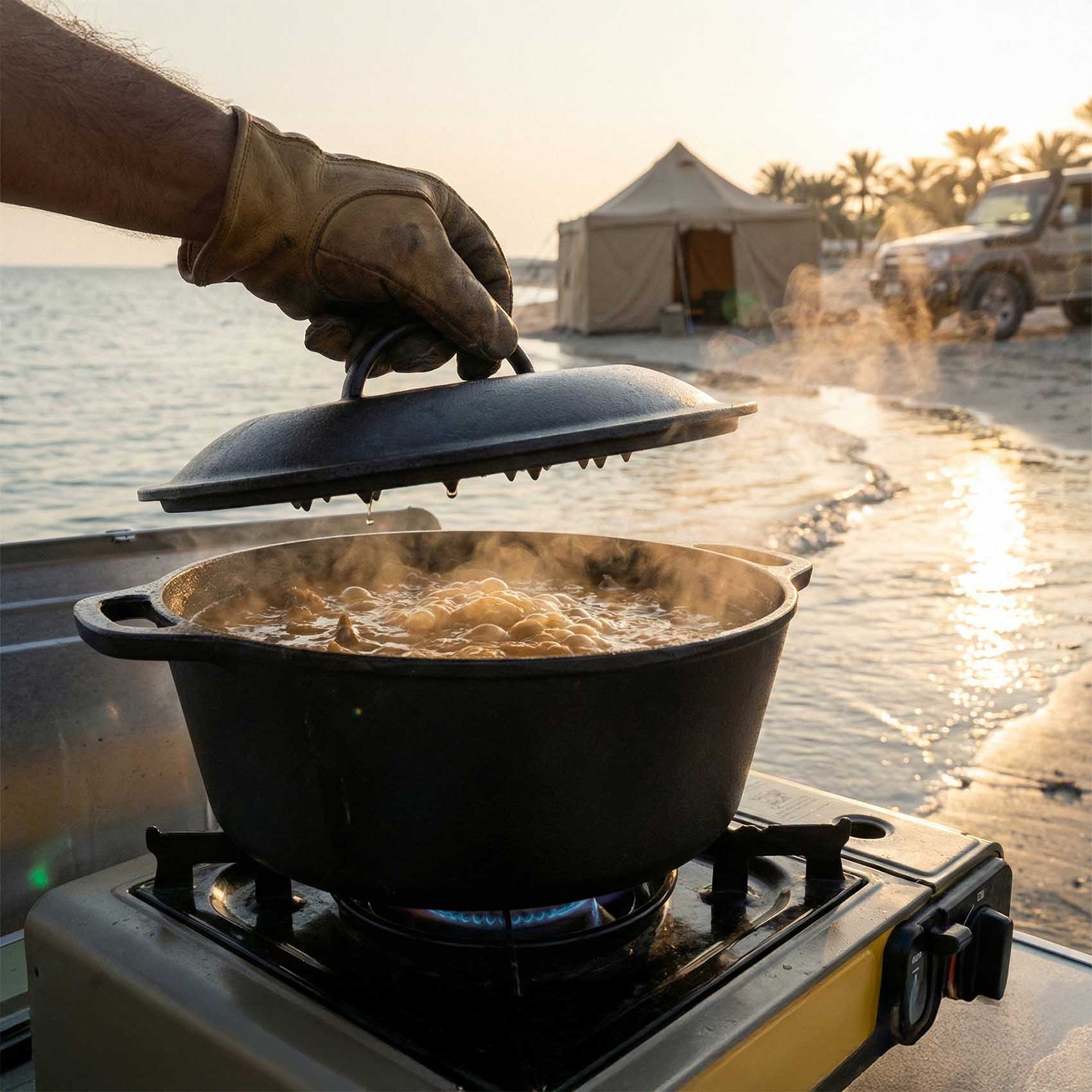 Complete with a cast iron lid, this Dutch oven is ideal for preparing soups, stews, roasts, and baked dishes. Its reliable construction ensures even heating and long-lasting use in both indoor and outdoor cooking environments.