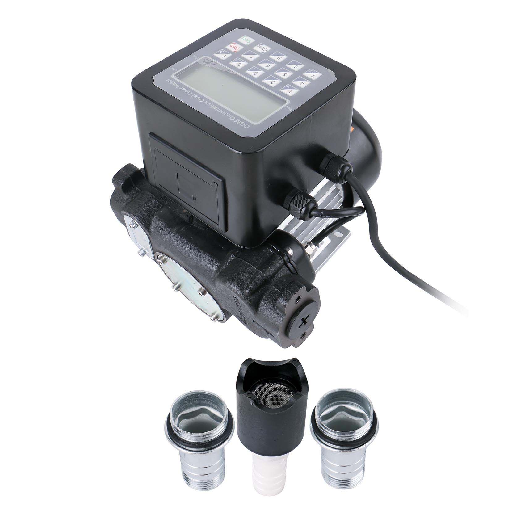 Install the pump securely on a stable surface and connect the inlet and outlet hoses (1" ports). Ensure the pump is connected to a 220V power supply. Switch on the unit using the built-in switch. The self-priming function allows quick startup without manual priming. Set the desired fuel quantity using the preset system, and begin dispensing. The integrated printer records transactions automatically. Monitor flow and ensure proper shutdown after use.