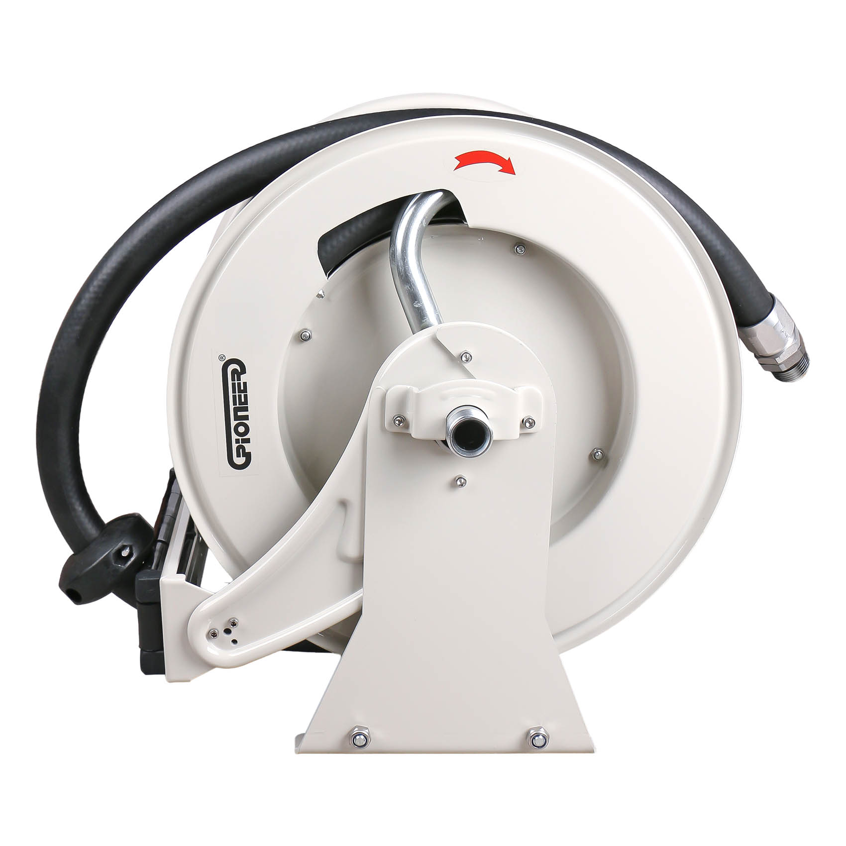 The PIONEER HRD1115 Retractable Diesel Hose Reel is a robust and efficient solution for managing diesel and fuel transfer hoses. Designed for durability and ease of use, this reel supports hoses up to 10M or 15M and features an automatic spring rewind system to keep your workspace organized and safe.
