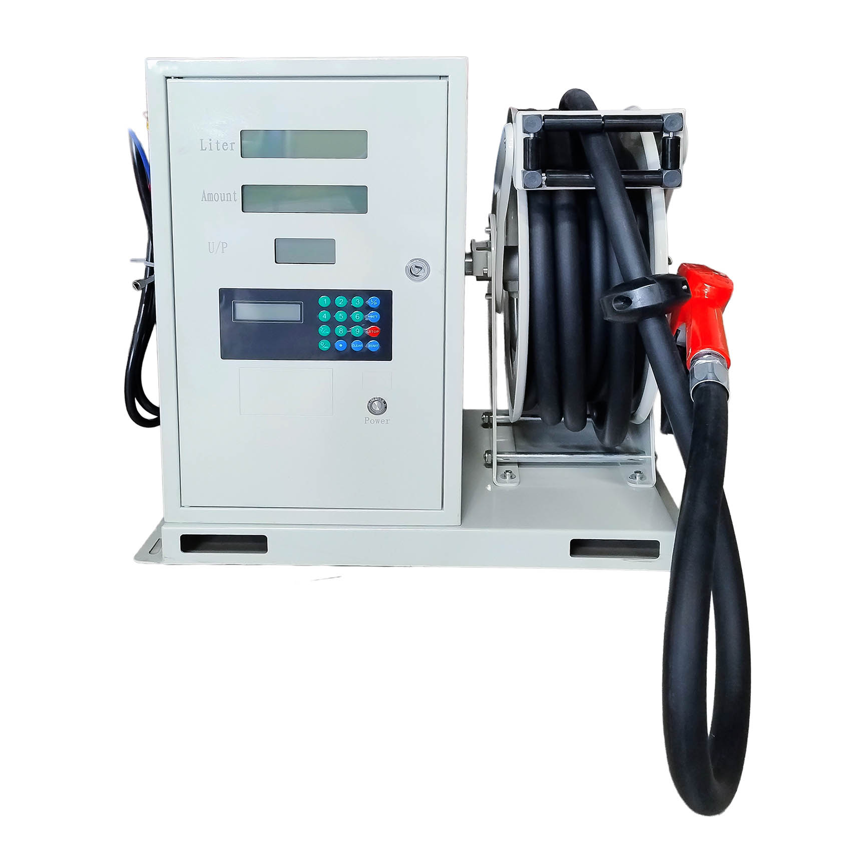WS50 TYPE SMALL FUEL DISPENSER WITH HOSE REEL IS DESIGNED FOR DIESEL AND KEROSENE , CAN BE INSTALLED ON GROUND, ON WALL, BESIDE THE TANK OR ON TRUCK. NOZZLE HOLDER WITH SWITCH, WHICH CONNECT TO THE BOARD.