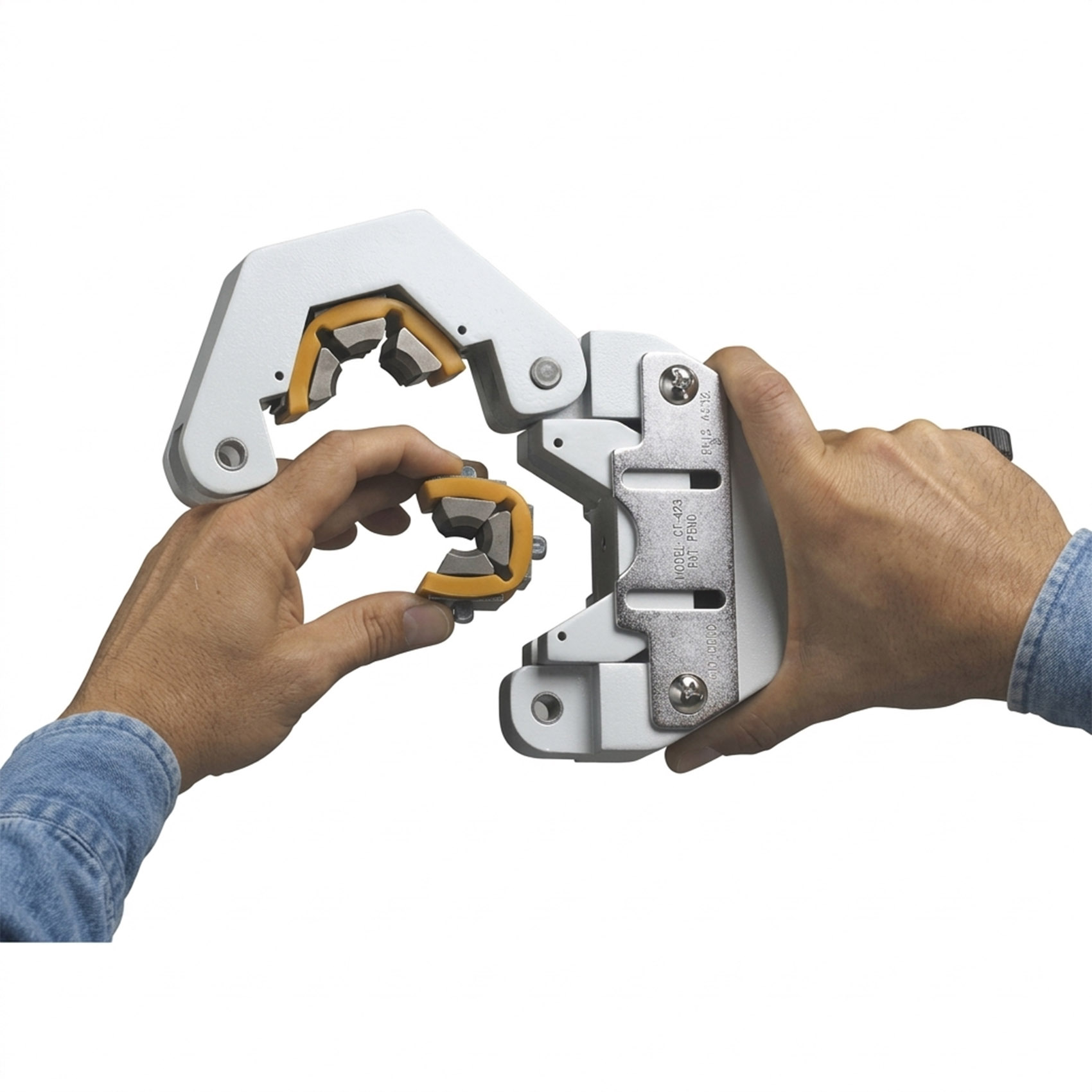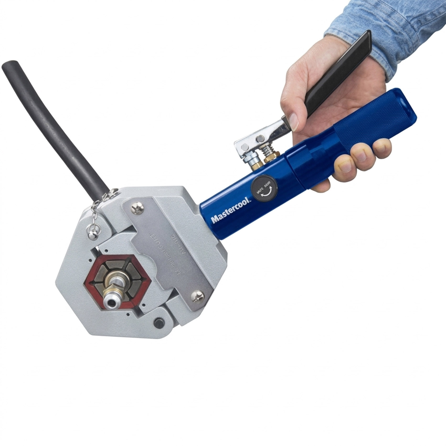 THE MASTERCOOL 71500-A HYDRA-KRIMP HOSE CRIMPING TOOL ENABLES EASY CRIMPING OF BARBED AND BEADED FITTINGS. THE TOOL IS EXTREMELY PORTABLE AND IDEAL FOR SHOP AND FIELD APPLICATIONS. THE INCLUDED DIES SNAP QUICKLY ONTO THE PRESS FIXTURE IN WHICH NO PINS OR SCREWS ARE REQUIRED.