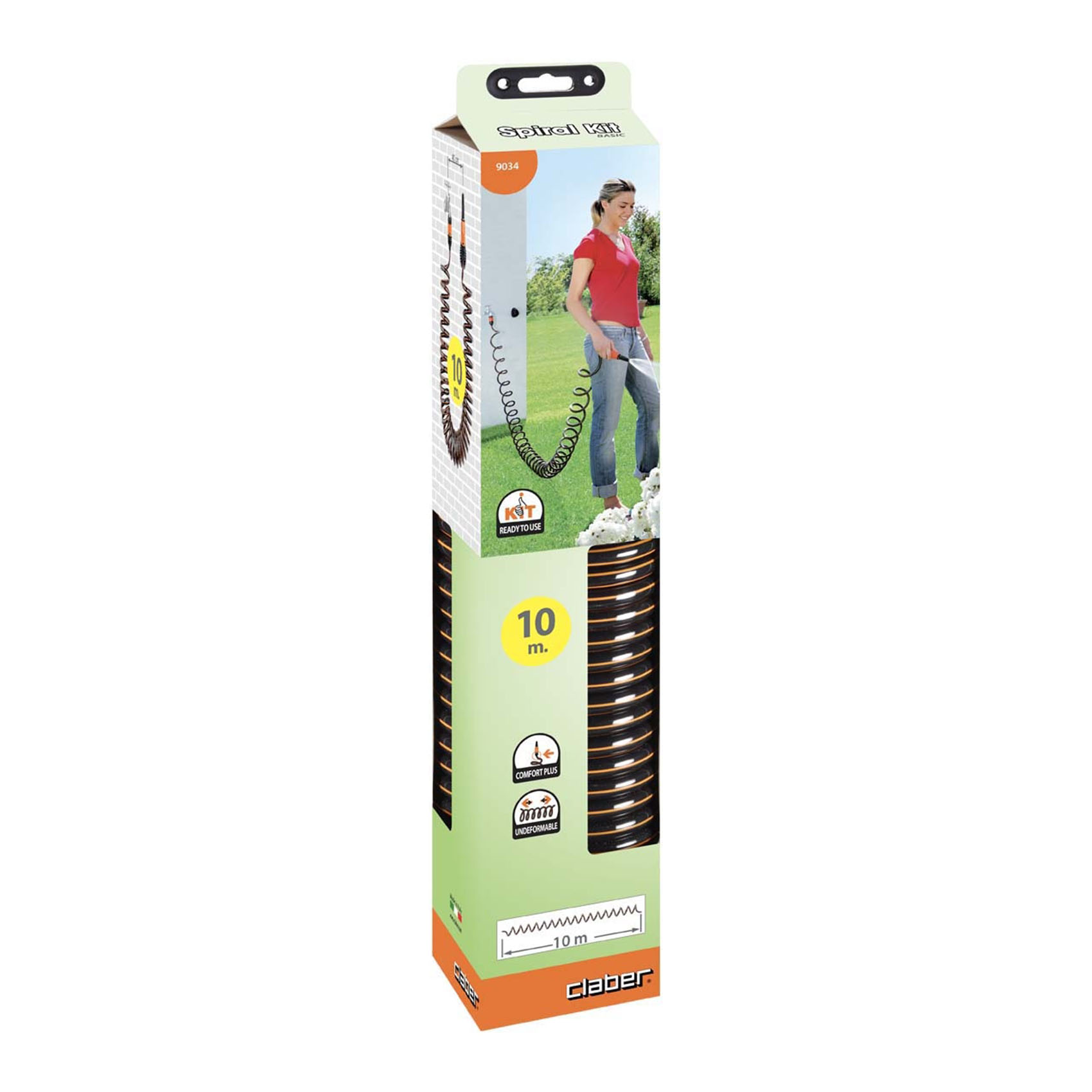 SPIRAL HOSE IDEAL FOR USE ON BALCONIES, TERRACES, SMALL GARDENS, BOATS AND CAMP SITES. THANKS TO THE QUALITY OF THE MATERIALS AND THE SPIRAL MEMORY, THE HOSE WILL ALWAYS REGAIN ITS ORIGINAL SHAPE AFTER USE. THE KIT COMPRISES: 10 METRES SPIRAL HOSE, 3/4” (20-27 MM) THREADED TAP CONNECTOR, AUTOMATIC COUPLING, AUTOMATIC COUPLING WITH AQUASTOP, SPRAY NOZZLE, WALL BRACKET WITH SCREWS AND PLUGS. MADE OF HIGH-QUALITY MATERIALS, THIS SPIRAL HOSE IS RESISTANT TO ANY STRESS, STRETCHING TO WHERE IT IS NEEDED AND RETURNING TO ITS ORIGINAL SHAPE AFTER USE. IDEAL FOR THE PATIO, THE GARDEN OR EVEN WHEN CAMPING OR ON THE BOAT.