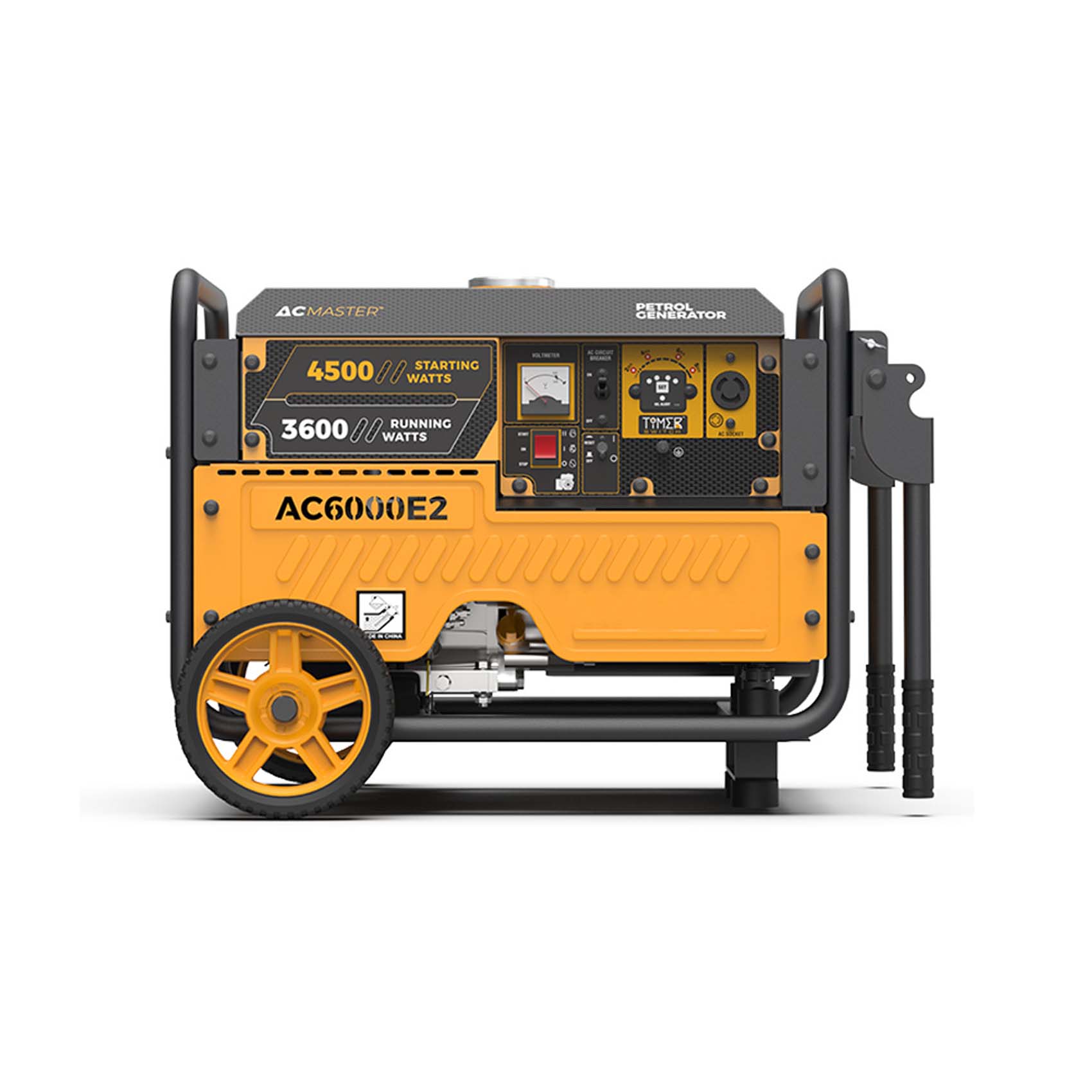 METAL HANDLE: THE GENERATOR HAS TWO METAL HANDLES SUPPORTING THE FIRMAN AC6000E2 GENERATOR'S TWO WHEELS IN DISCHARGING THEIR DUTIES. YOU CAN HOLD ON TO THEM TO PULL/PUSH THE GENERATOR IN ANY DIRECTION.