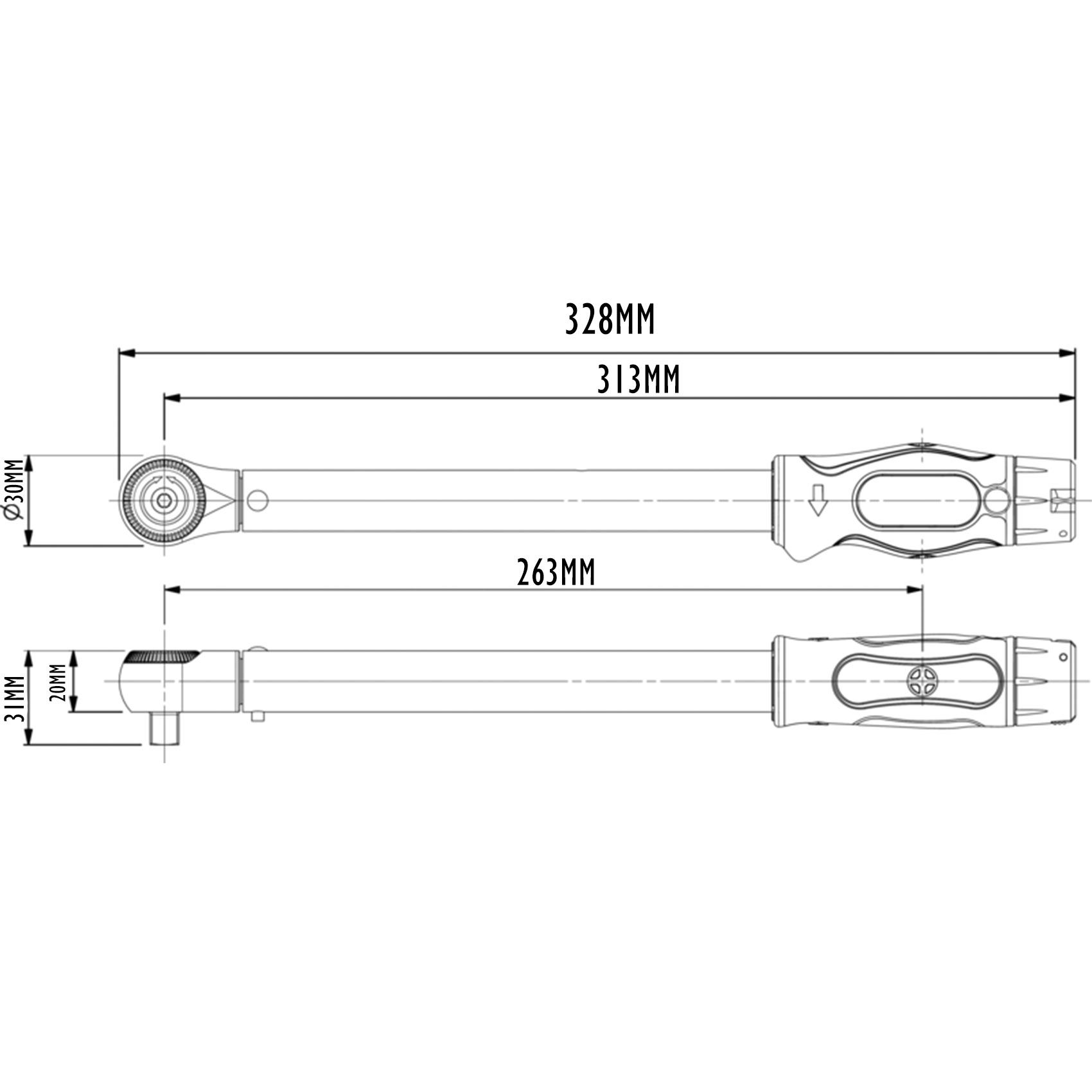 . MICROMETER SCALE FOR SIMPLE AND ERROR FREE SETTING (ON DUAL SCALE WRENCHES, THE MICROMETER INCREMENT APPLIES TO THE N·M SCALE)