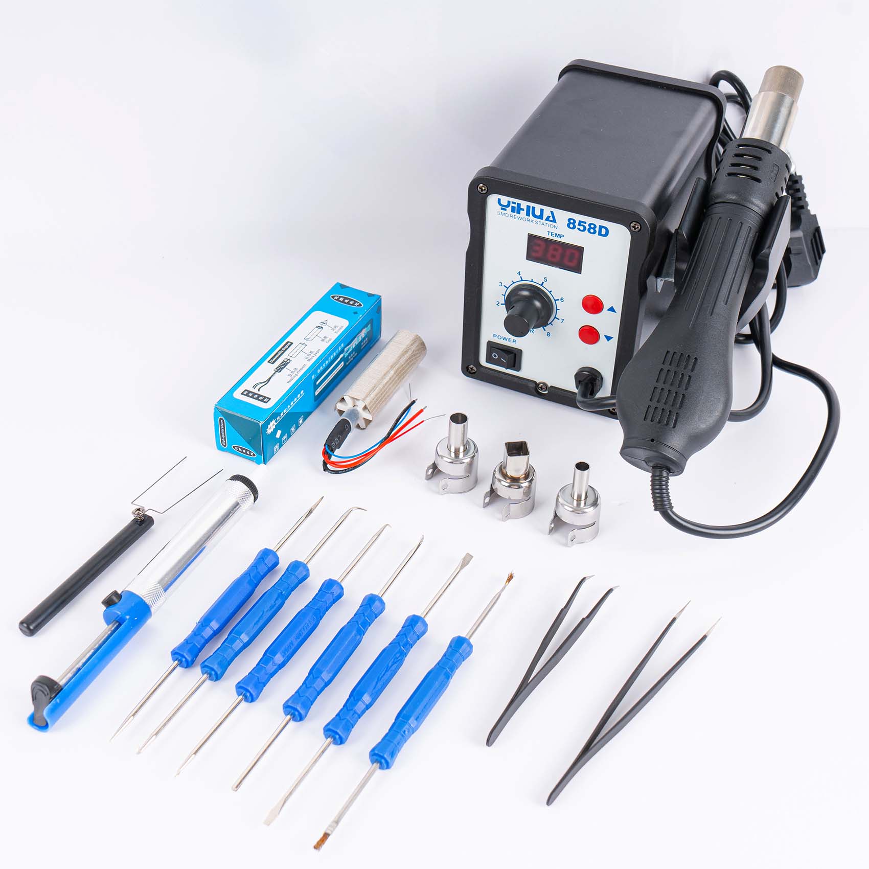 PIONEER YIHUA 220-240V 700W DIGITAL SOLDERING STATION WITH LED 858D HOT AIR REWORK STATION RANGE | HIGH QUALITY | HOT AIR GUN + ELECTRIC IRON SET FOR SMD SMT DIP | 100°C~500°C STATION RANGE | 200°C~450°C IRON | 120L/MIN ADJUSTABLE | INDUSTRIAL EQUIPMENT, WORKSHOPS, REPAIR SHOPS, PLUMBING AND MORE